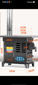 柴煤两用多功能取暖气化炉柴火灶家用烧木柴煤块农村室内无烟移动 25款气化炉升级铸铁炉胆(单个炉子)