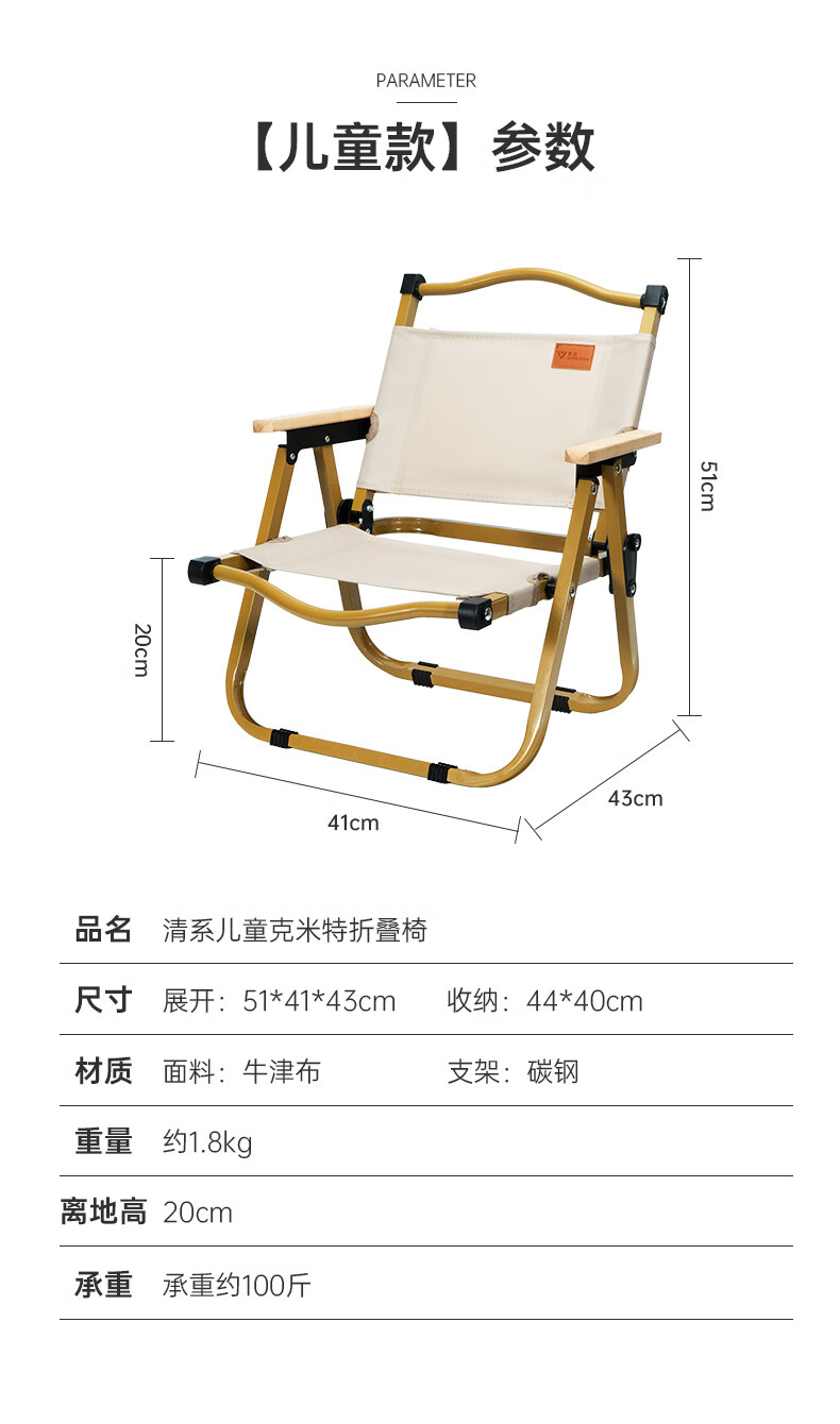 清系 户外折叠椅露营椅子户外椅子折叠便携露营椅沙滩椅克米特椅 【树脂扶手圆管款】中号卡其色