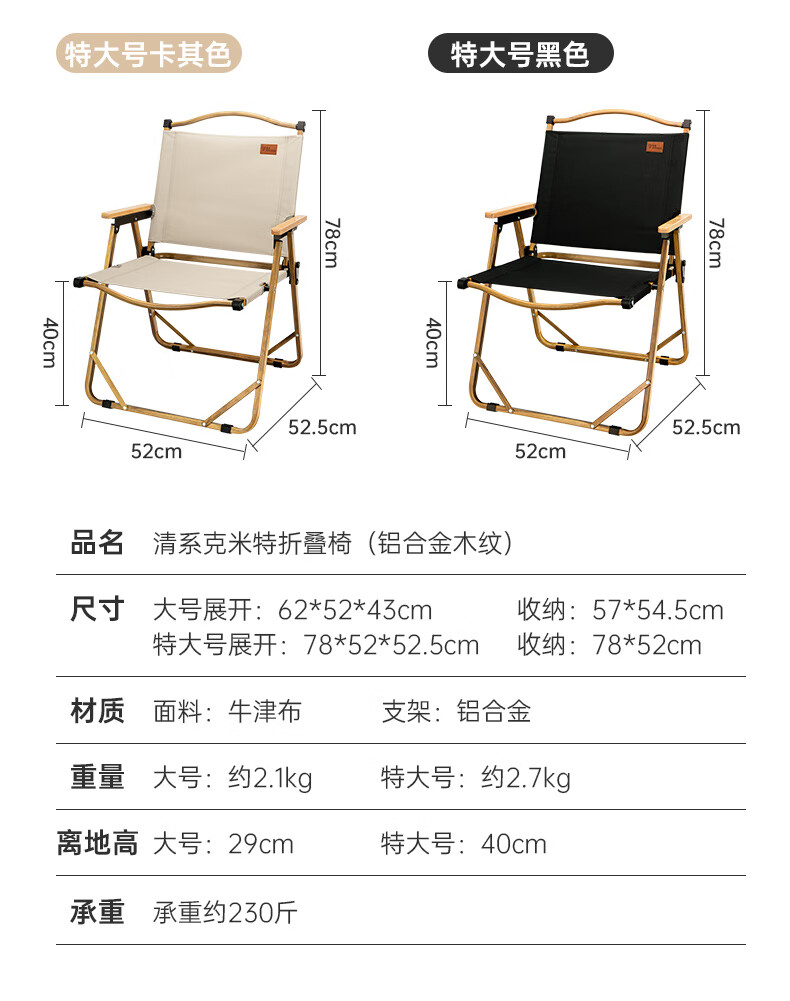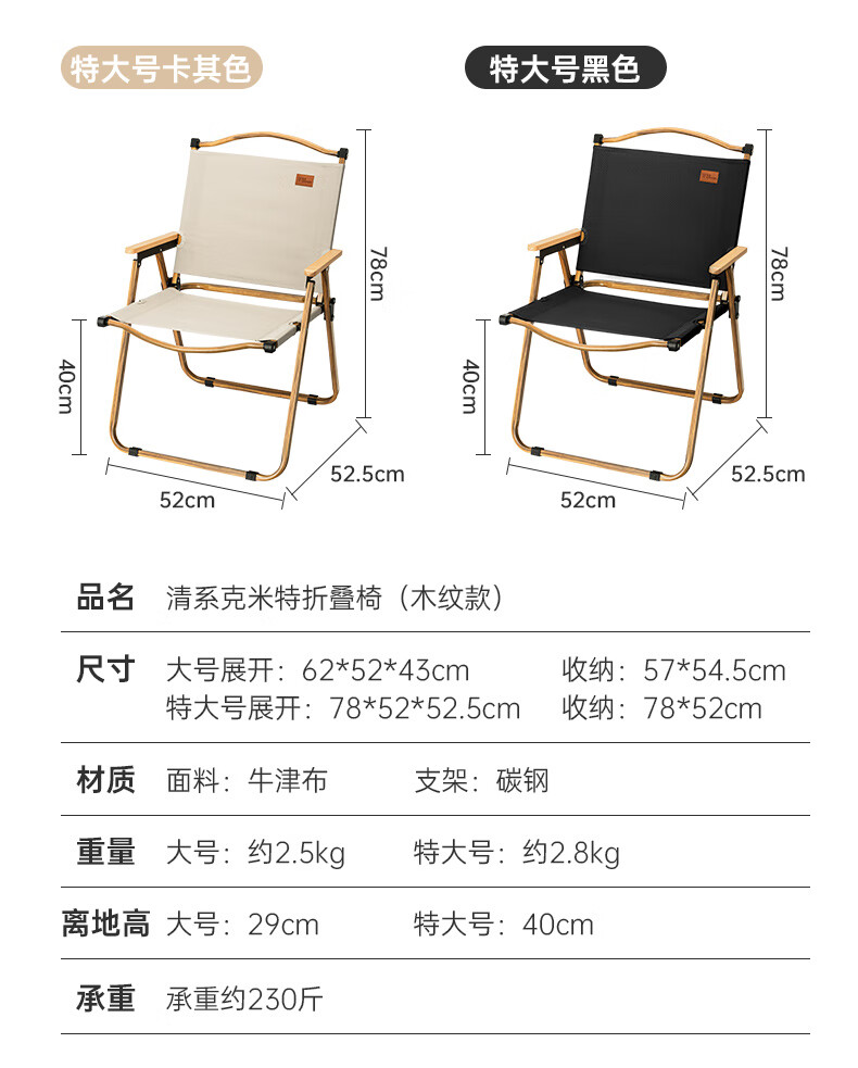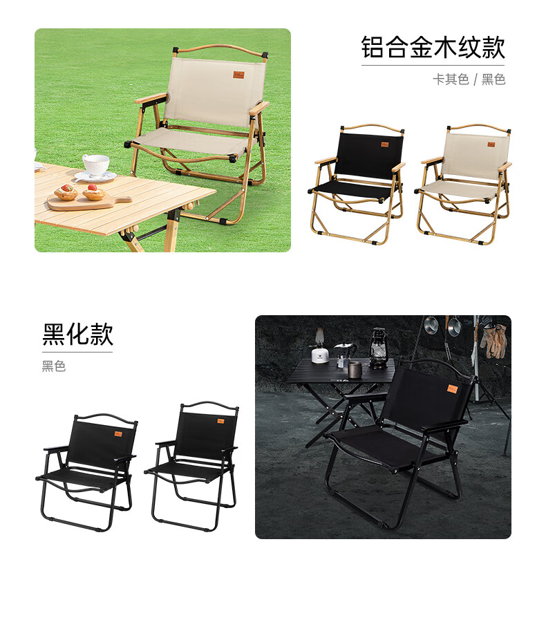 岩合户外折叠椅 克米特椅 便携式懒人钓鱼椅 春游踏青露营蛋卷桌椅子 深黑色-特大号【加厚木质扶手】 1把