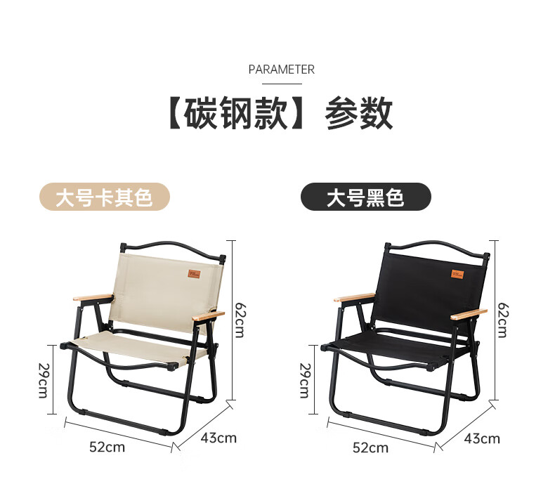 清系 户外折叠椅克米特椅露营椅子户外椅子折叠便携露营 沙滩椅 【树脂扶手碳钢款】大号卡其色
