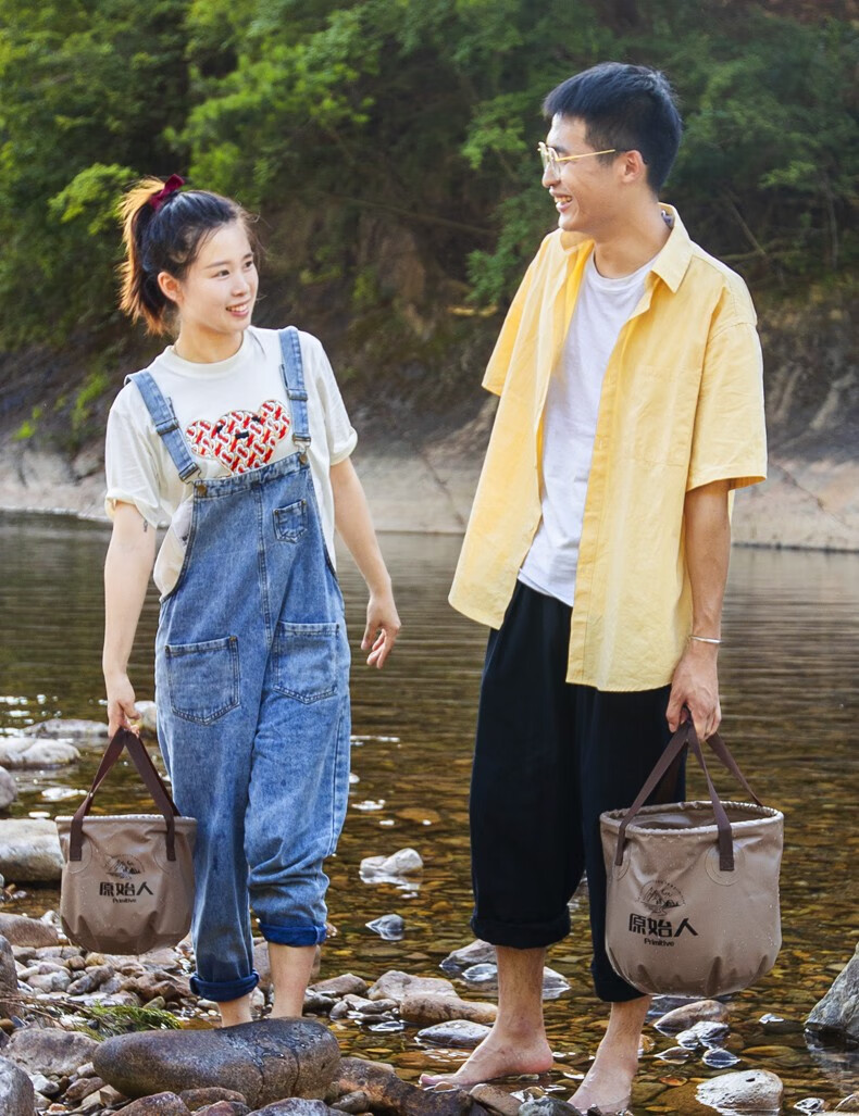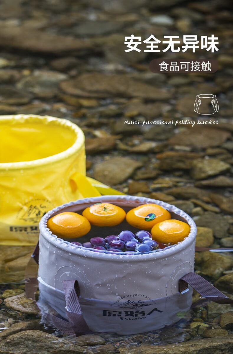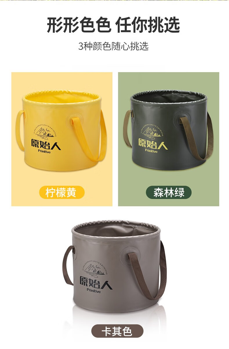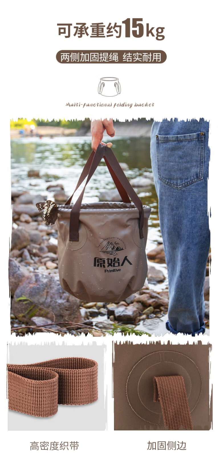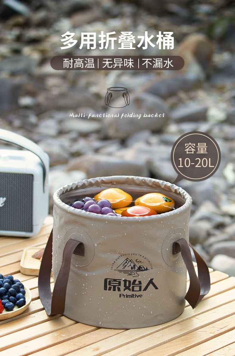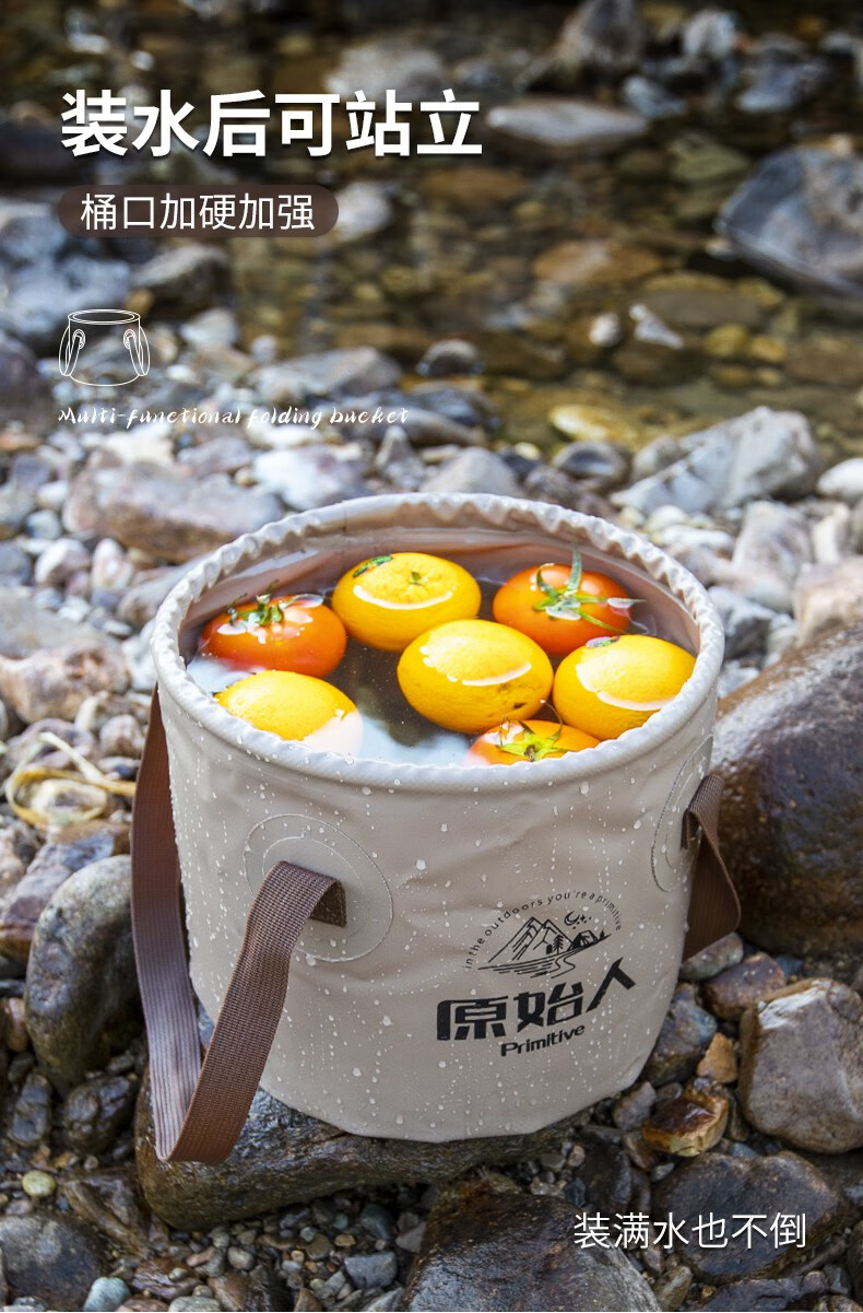 原始人 户外折叠水桶便携水箱大容量储水桶旅行蓄水储水罐车载装水桶 卡其色/10L双面防水