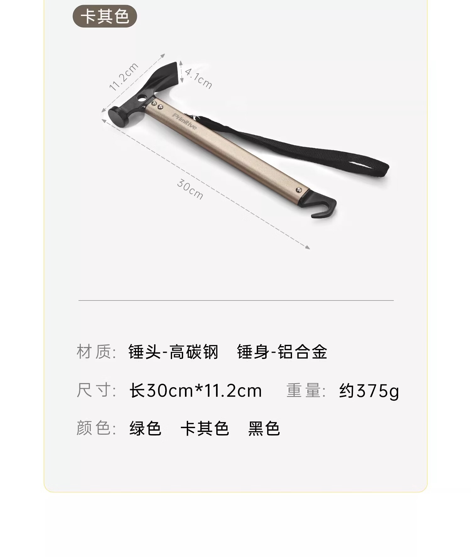 大小合适,好用不重,携带方便! 并且外观也相当奈斯 平时钉个地钉,拆个地钉,居家维修等等 主要颜值也很在线 PS:露营时,晚上不要放在帐外,放帐内也可防身哦!