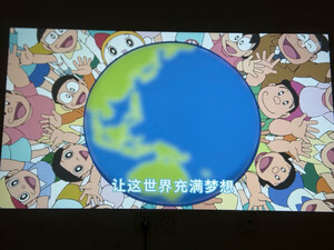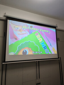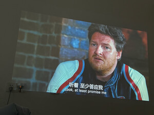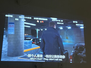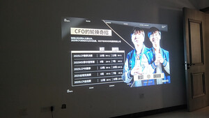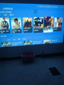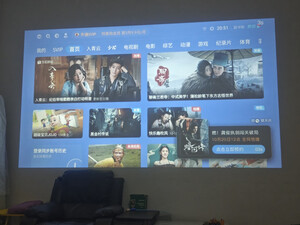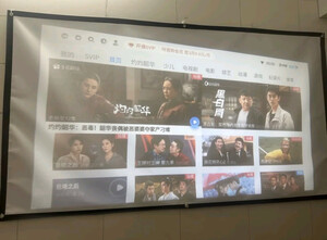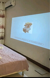 一点都不模糊,看起来非常好,你投影起来大概像100 英寸那么大。价格也很便宜,非常划算,我觉得比买电视好多了。家里面看起来非常方便,也特别大,像看电影一样