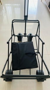 特意买了两个来对比,这款重量较轻,钢管要细一些,但强度应该没有影响,坦克轮子,转向及牵引都比较灵活省力,打开容易,折叠只需要侧面放置后一压即可,因为轮子比较大,又不能卸,所以放车里后备箱还是比较占空间。先用来取快递,非常方便。包装不够好,还被撞了一个洞,轮子要能卸下就更完美了。