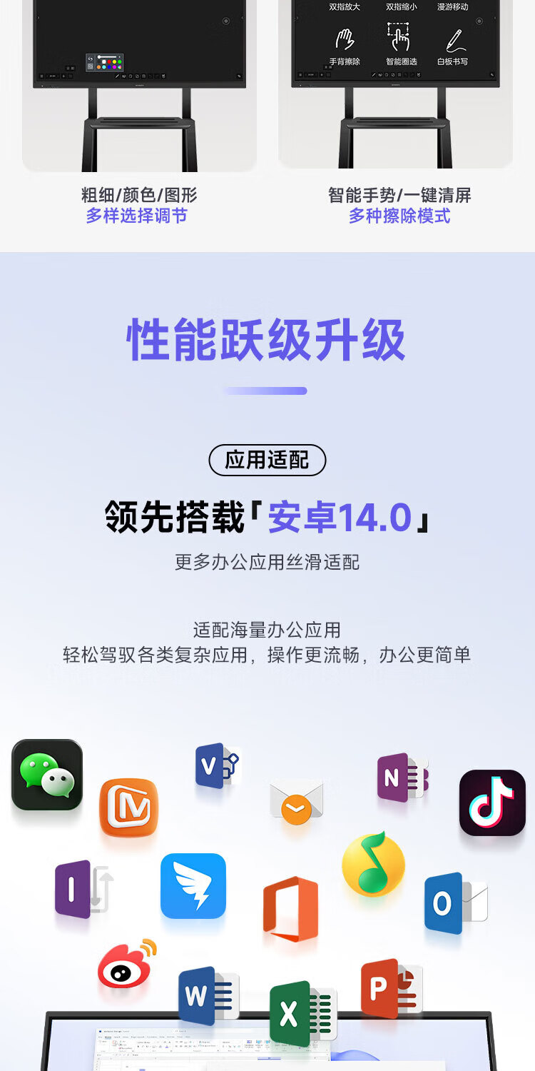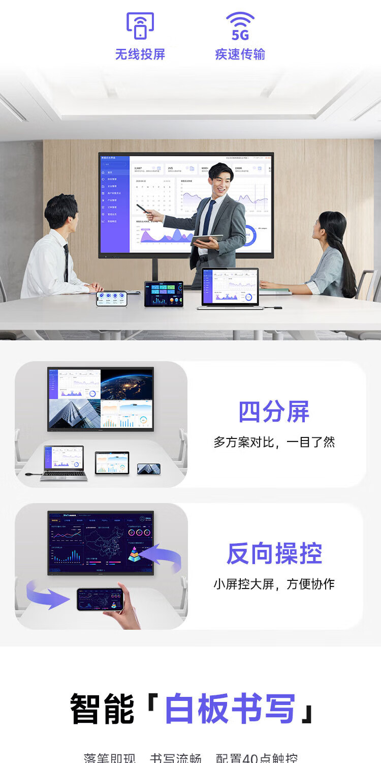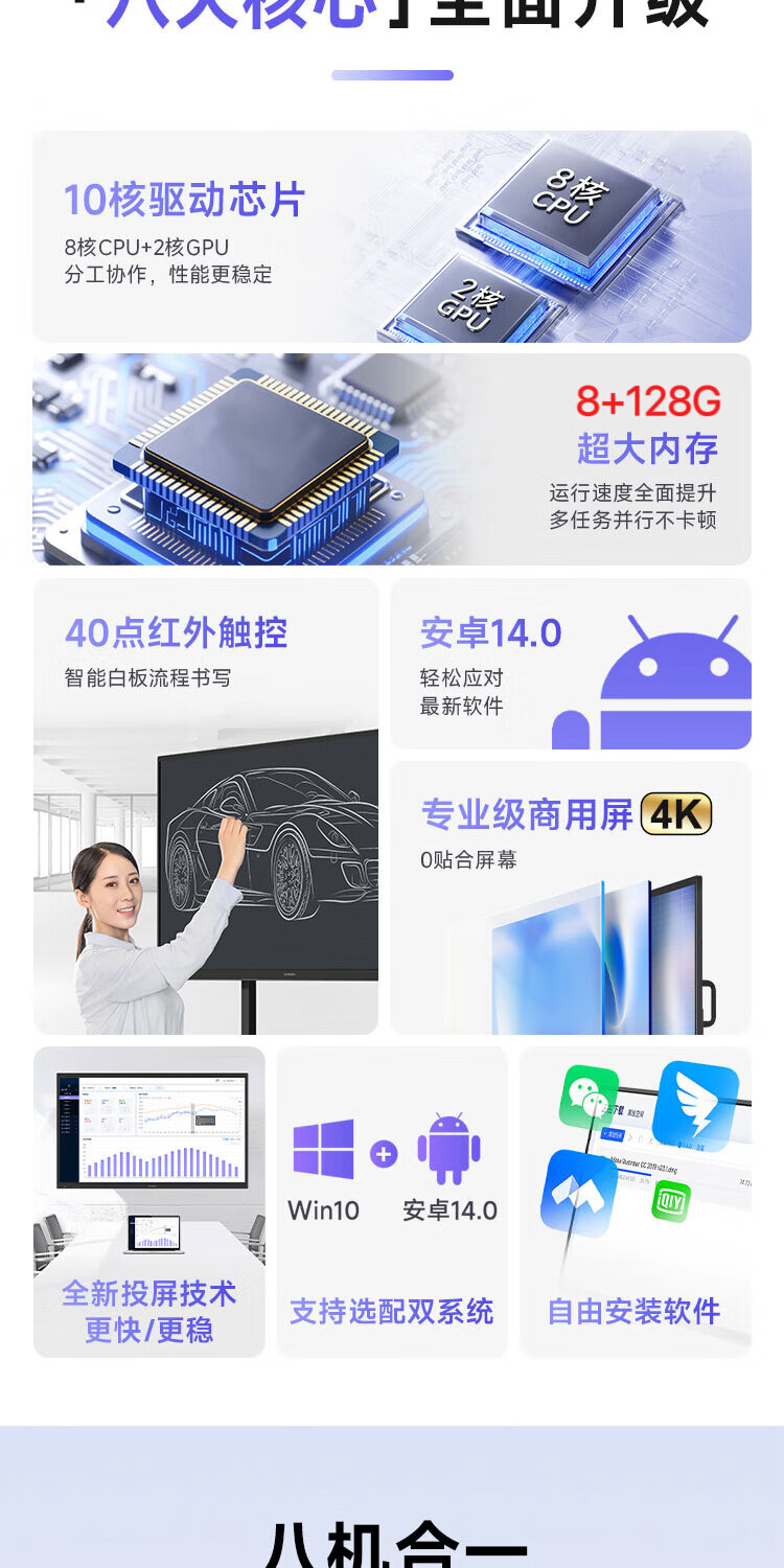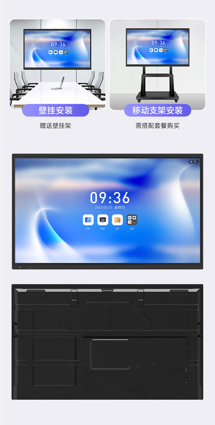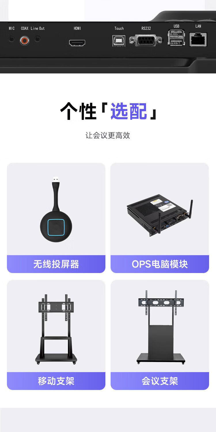 教学一体机触屏会议平板电视多媒体智能电子白板书写学校培训教育幼儿园大屏触摸触控一体机 65寸/适用10-15人/赠送推车 【教学标配】win10(i5/8G/128G)