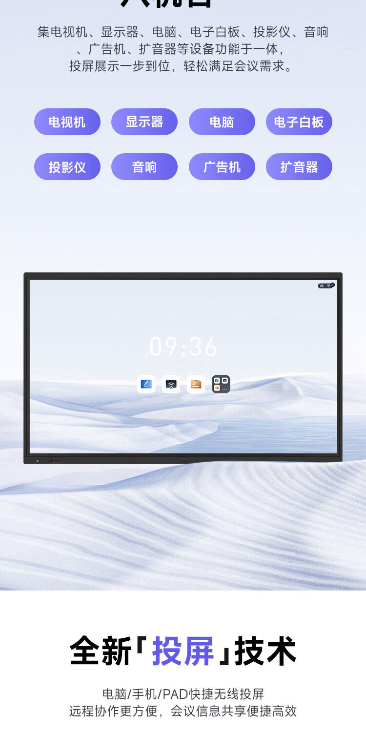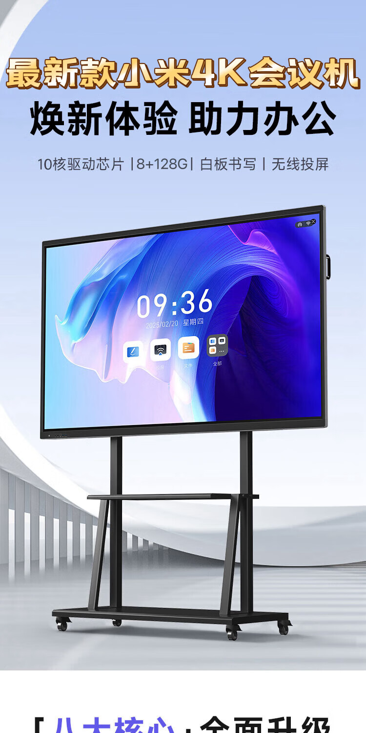 最高配小米4K新款会议教学触摸一体机多媒体 75 85 100寸电子白板 110寸i7/16+512G双系统防蓝光屏