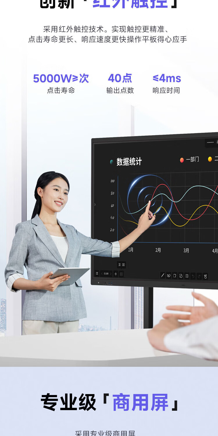 MALG触摸巨幕120/150英寸会议平板一体机4K超高清商用显示器终端100/130多媒体电子白板书写投屏教学监控大屏电视 130MX安卓系统【2米5商显大屏】触摸一体机