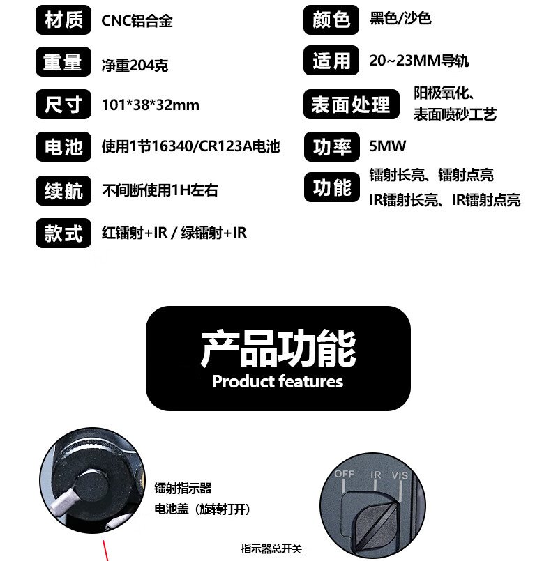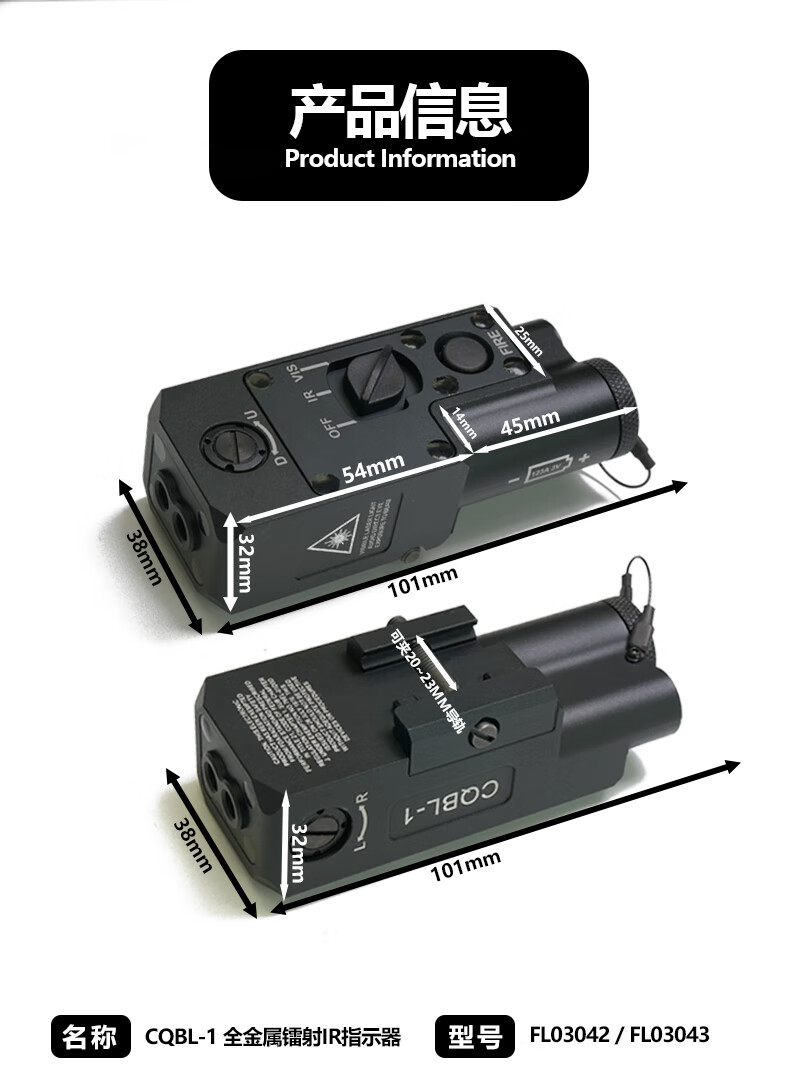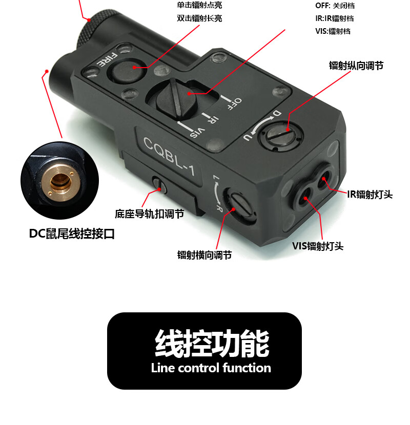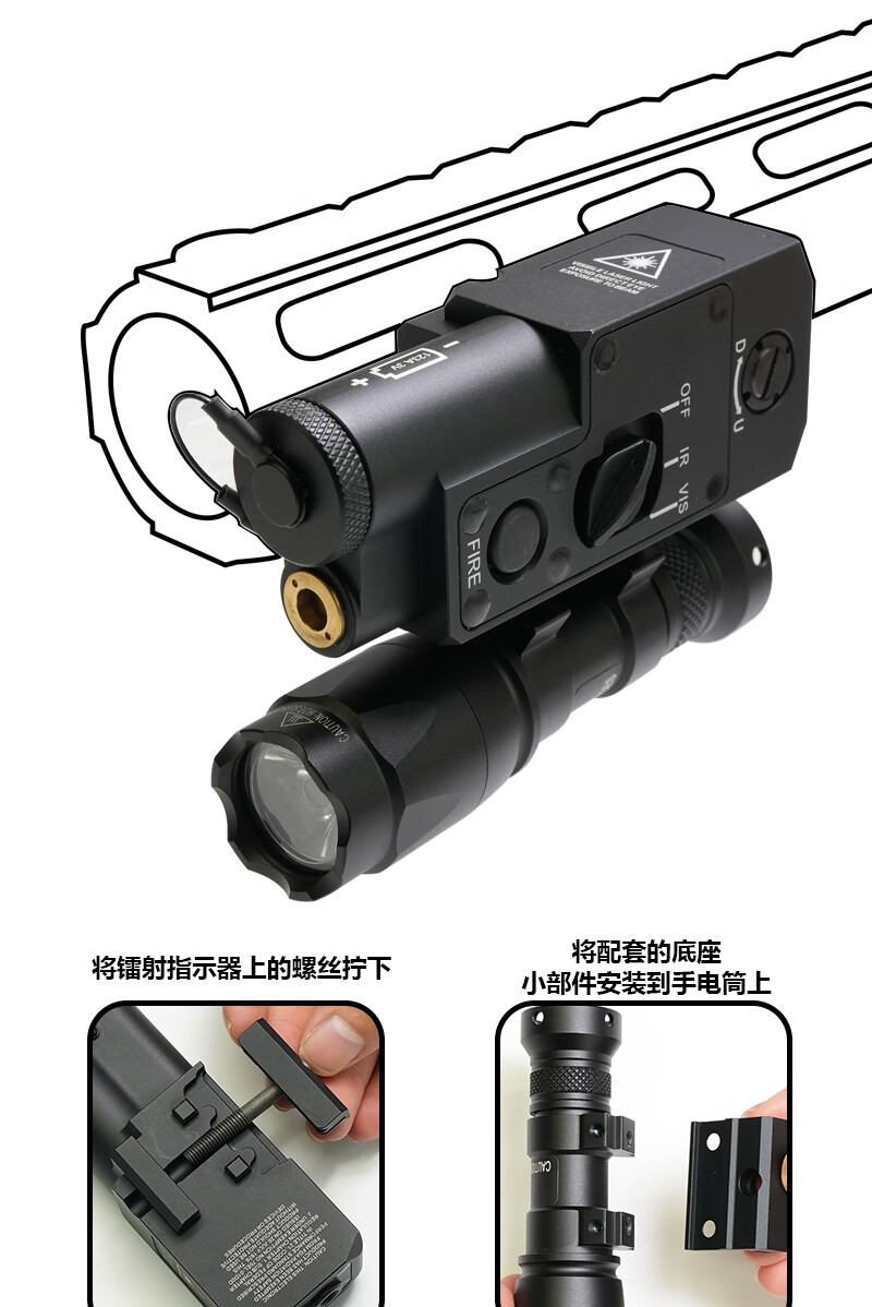 FIRECAT-IR战术盒CQBL-1镭射指示器红绿激光侧面配M600M300手电 黑色-(CQBL-1)红激光+IR送电池