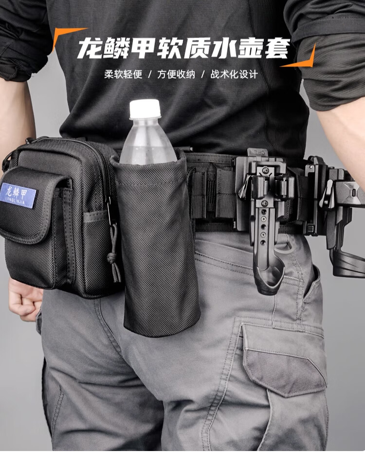 娂奾尼龙水壶套战术户外水杯套八大件腰带运动水壶快拔套保温杯套通用 软质水壶套黑色
