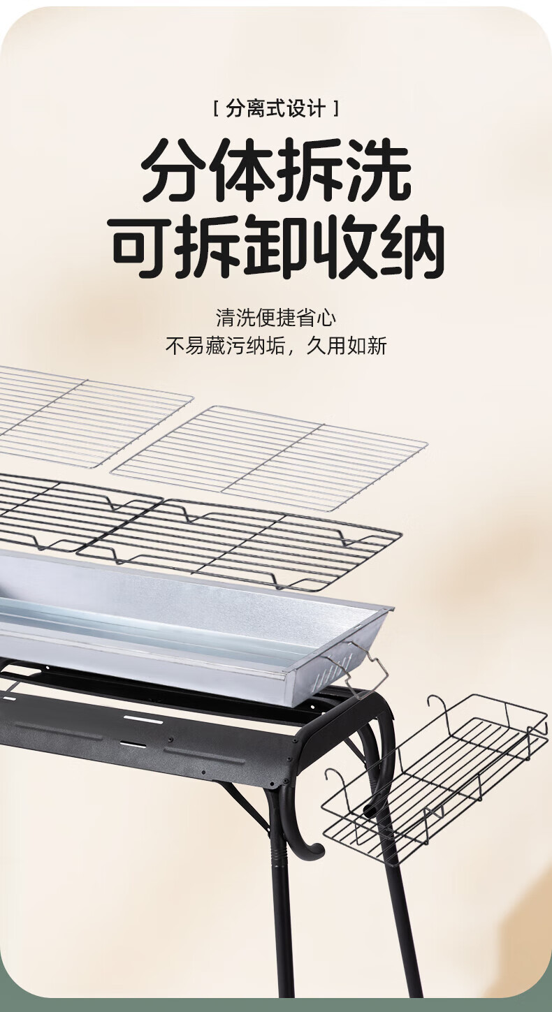 牧行烧烤架户外家用炉加厚加粗大号5-10人使用 烧烤炉+烤网-加高82cm