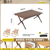 北乐户外便携式露营蛋卷桌可折叠桌椅子野餐摆摊桌椅野营野炊装备套装 胡桃木色中号【90cm】+椅子*2