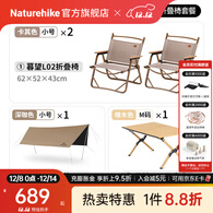 Naturehike挪客暮望超轻铝合金折叠椅户外露营椅便携式野餐钓鱼沙滩懒人椅子 卡其色小号2人露营基础套餐