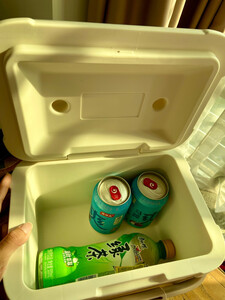 不得不说果然是camping用品的大品牌,质量是很好的没有毛刺和难闻的塑料味。给大家看看自然光和晚间灯光拍的颜色效果很好看,送了两个冰袋,我试过5L可以装6罐罐装饮料或者打横放4支支装饮料🥤~nice期待国庆节带出街用哈哈