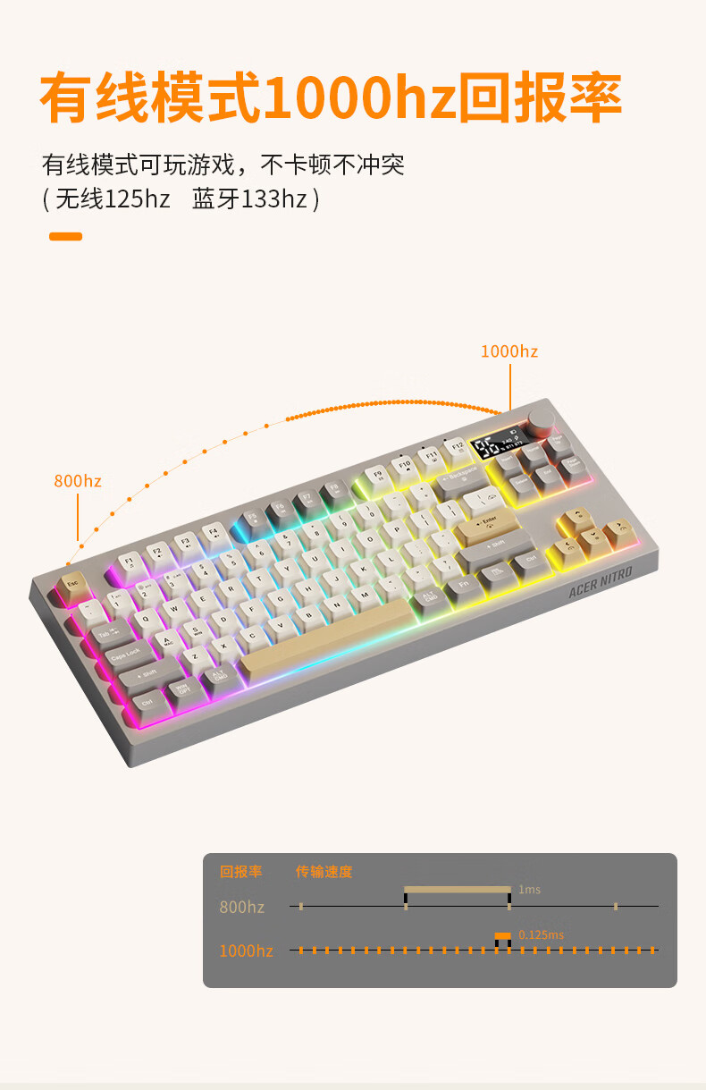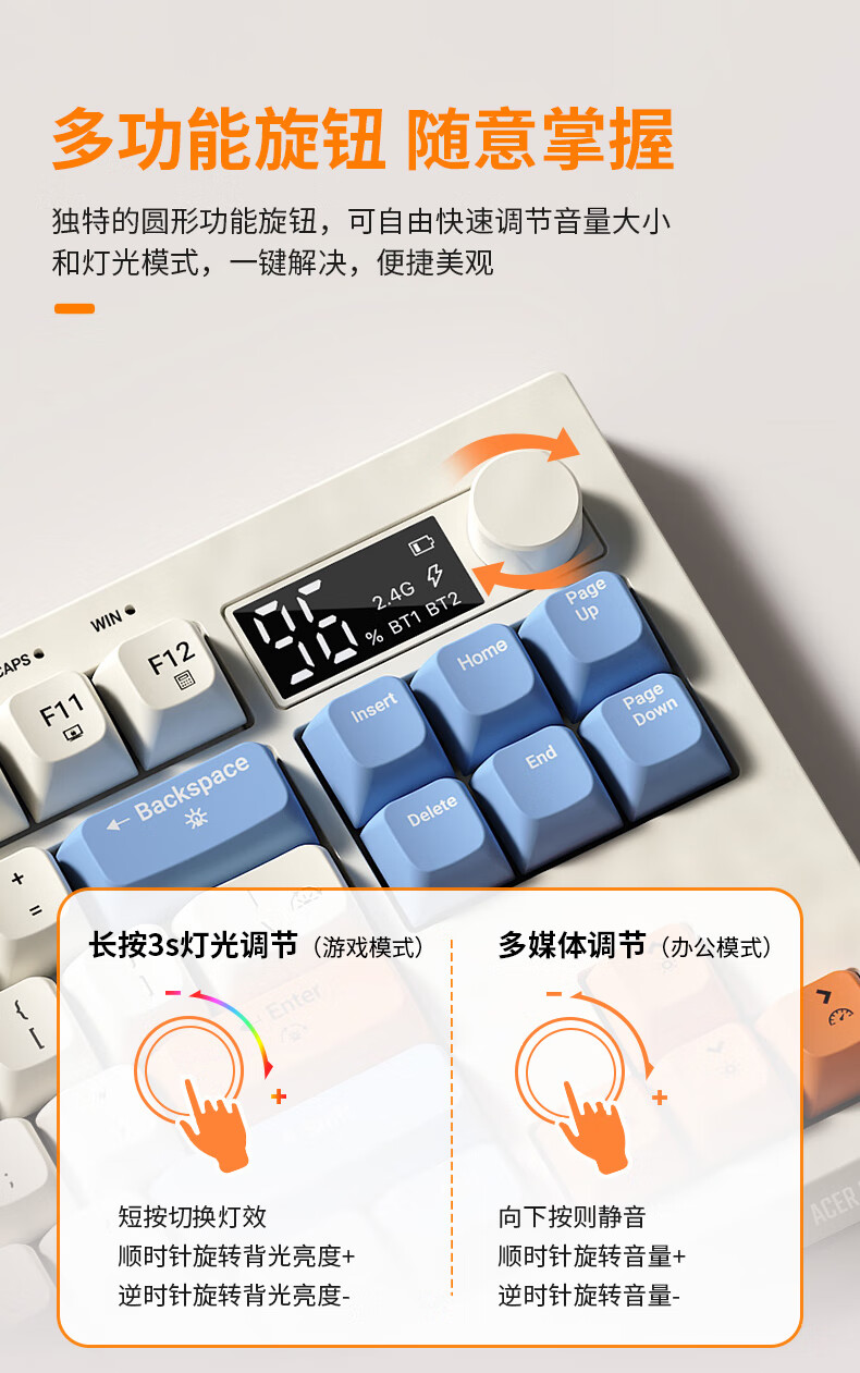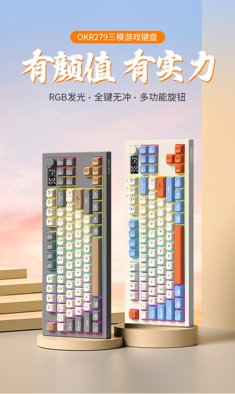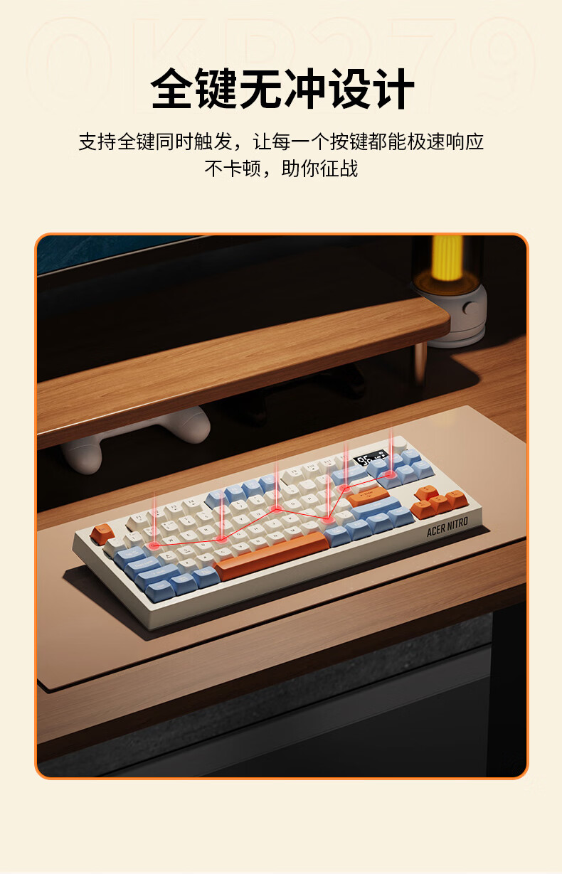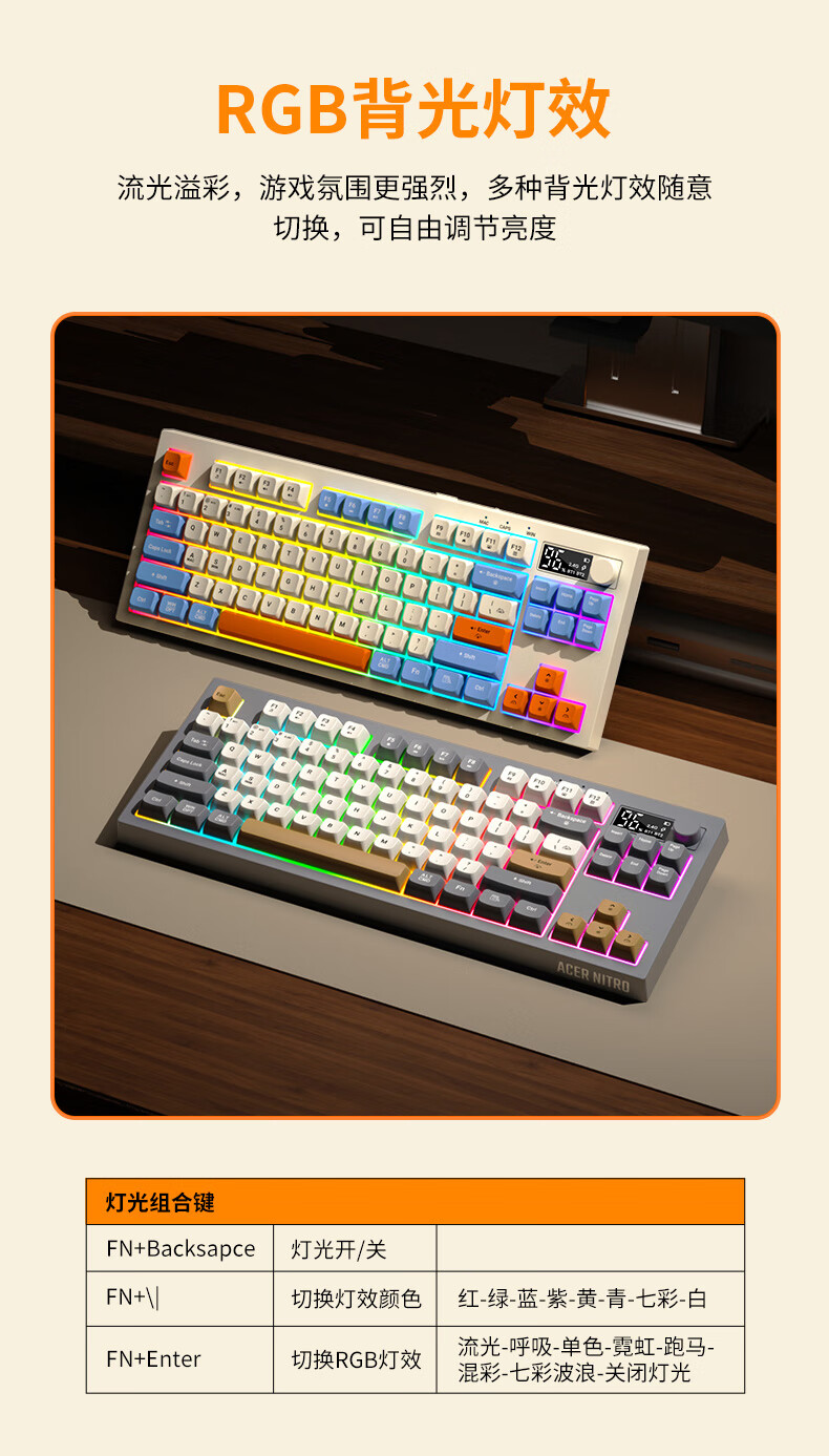 宏碁(acer)暗影骑士无线蓝牙键盘鼠标套装有线三模机械手感电竞游戏外设静音办公背光笔记本台式机mac电脑用 活力橙丨三模连接丨全键无冲+三模无线游戏鼠标白