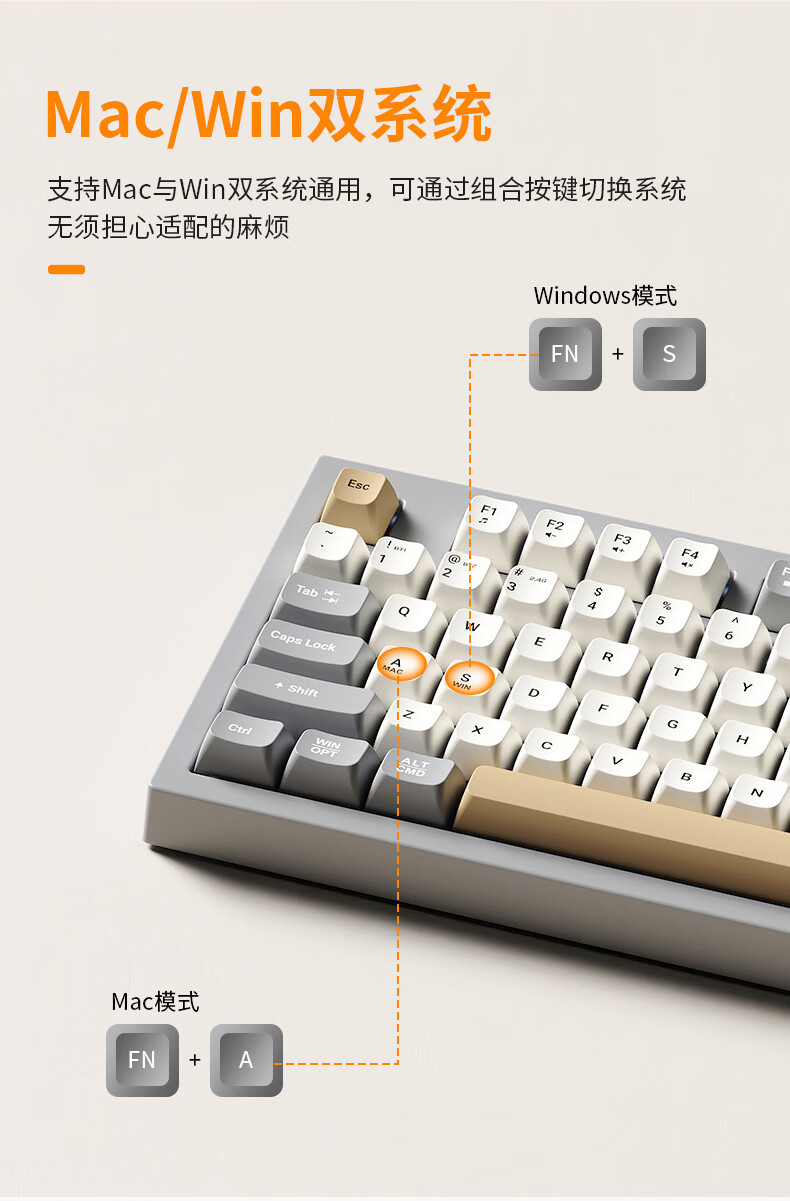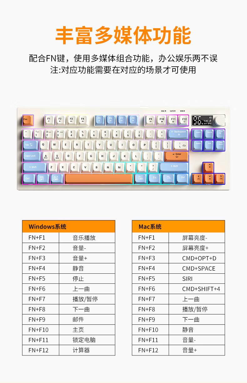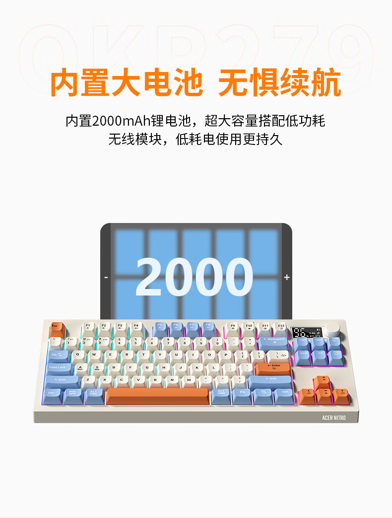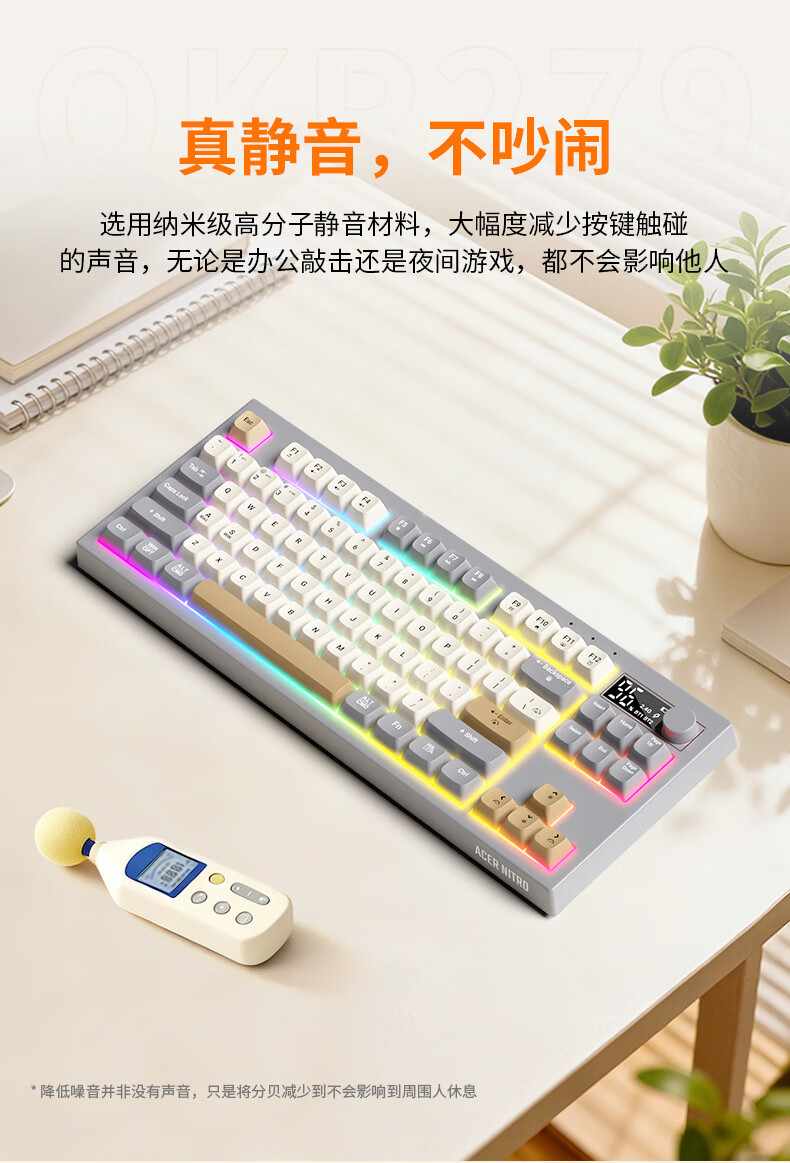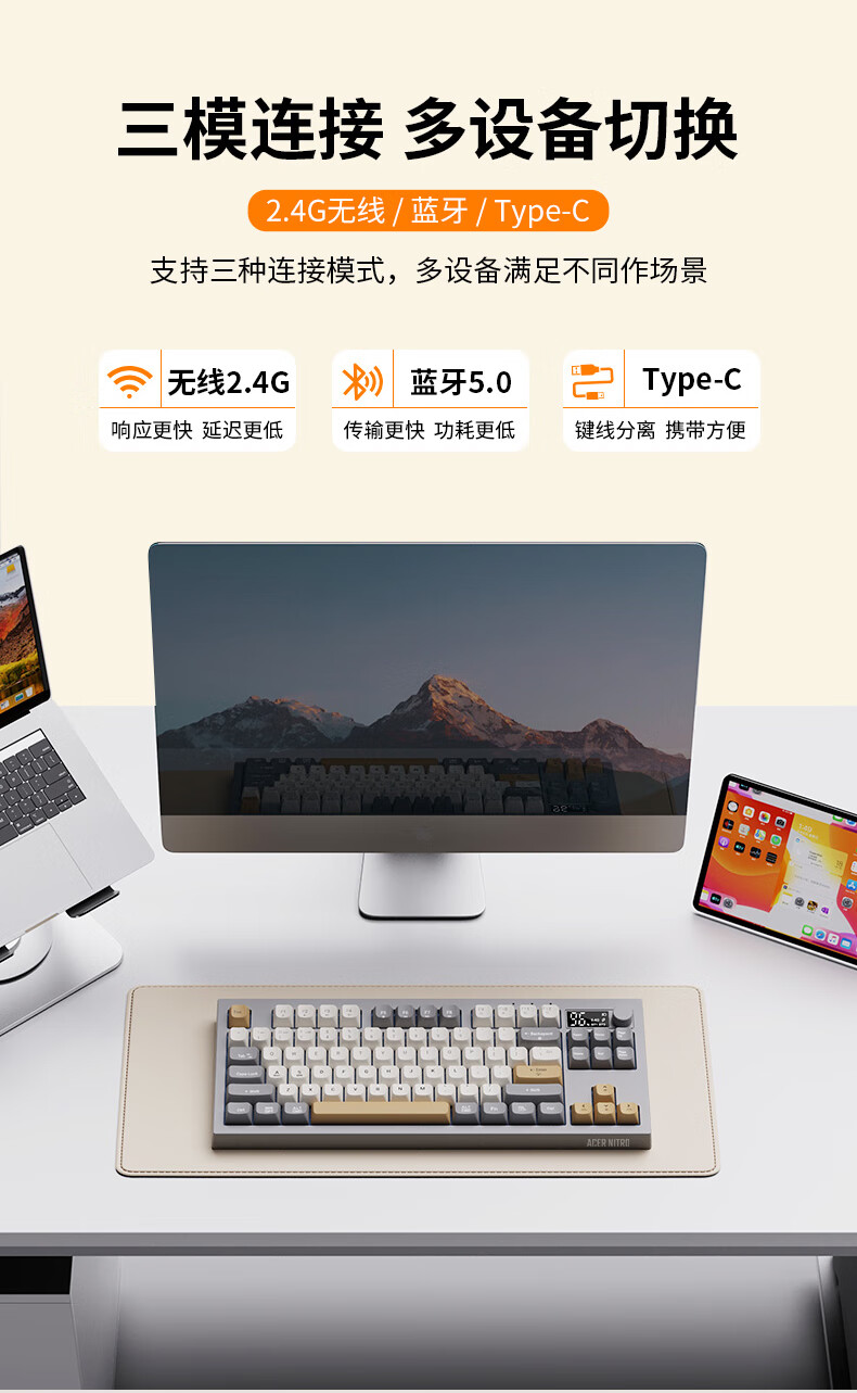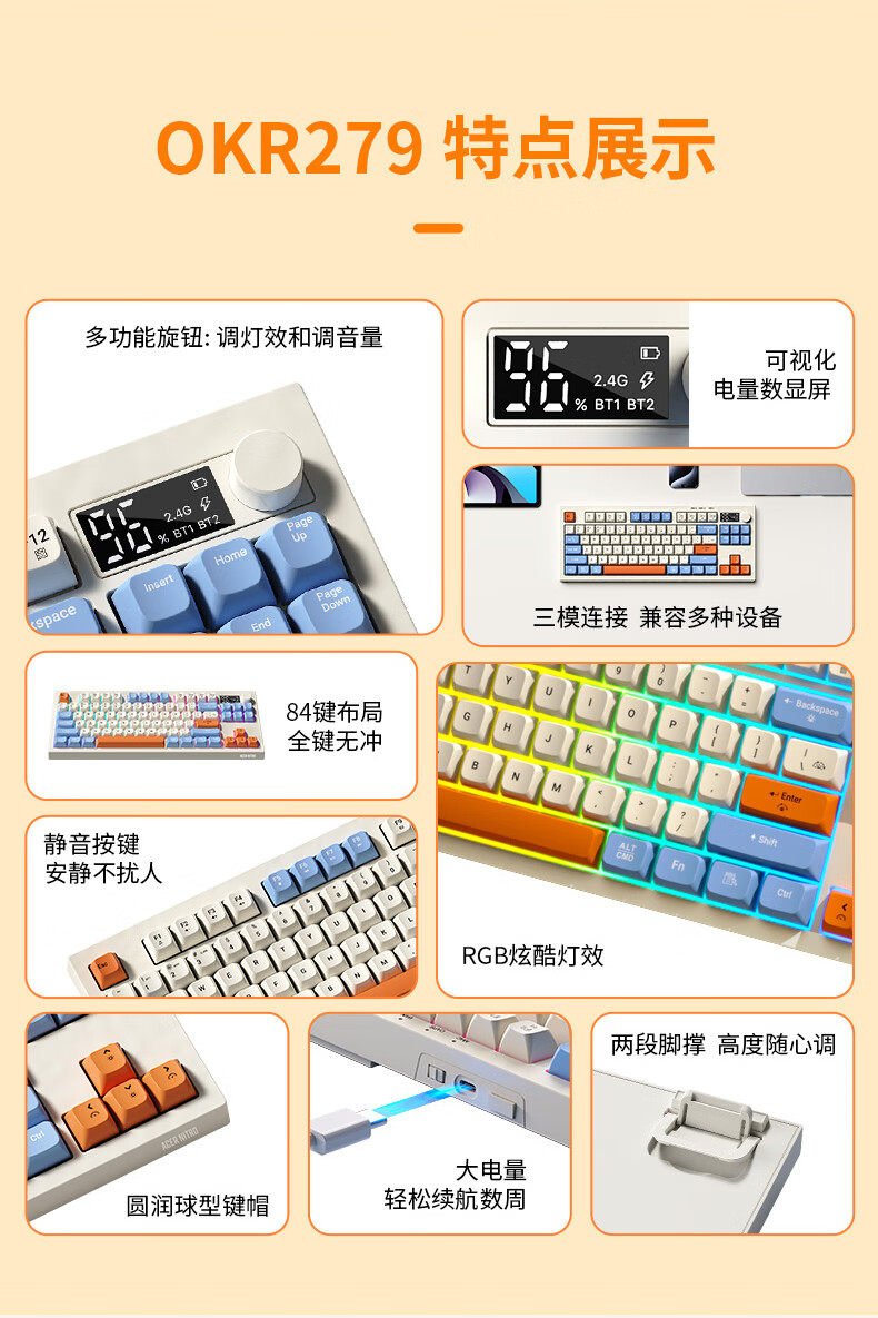 宏碁(acer)暗影骑士无线蓝牙键盘鼠标套装有线三模机械手感电竞游戏外设静音办公背光笔记本台式机mac电脑用 活力橙丨三模连接丨全键无冲+三模无线游戏鼠标白