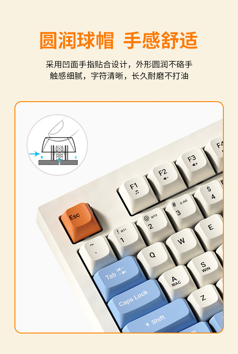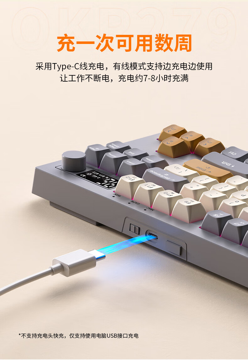 宏碁无线蓝牙键盘 type-c充电 真机械手感 笔记本平板ipad电脑通用键盘 黄灰拼色 OKW219