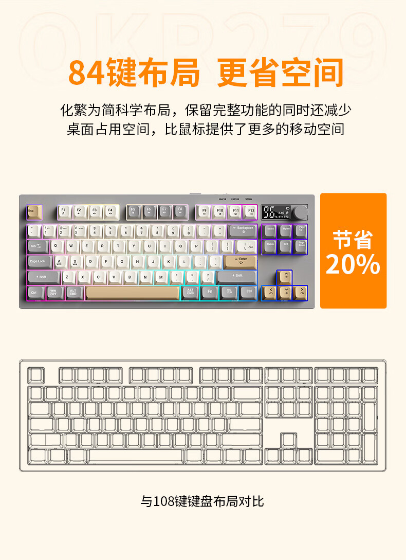 静音键按着手感软弹,98键带小键盘不占地,RGB灯效很棒。买来打游戏的完全够用,性价比直接拉满!