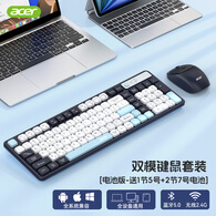 宏碁(acer)无线键盘鼠标套装蓝牙双模台式电脑笔记本用静音办公商务可充电长续航机械手感适用于Mac平板手机 蓝白-键鼠套装【电量显示屏+2.4G无线+蓝牙】