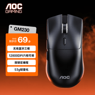AOC GM230无线蓝牙三模鼠标 轻量化游戏电竞办公可充电鼠标便捷 支持驱动宏编程 笔记本电脑鼠标 黑色