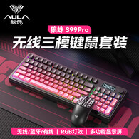 狼蛛(AULA)S99pro无线蓝牙有线三模键盘数显屏机械手感RGB渐变侧刻轻音键盘鼠标套装mac电脑键盘 渐变粉pro【键盘鼠标套装】 三模