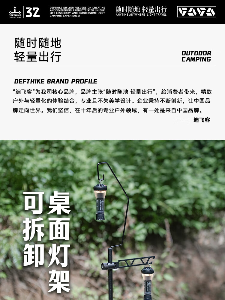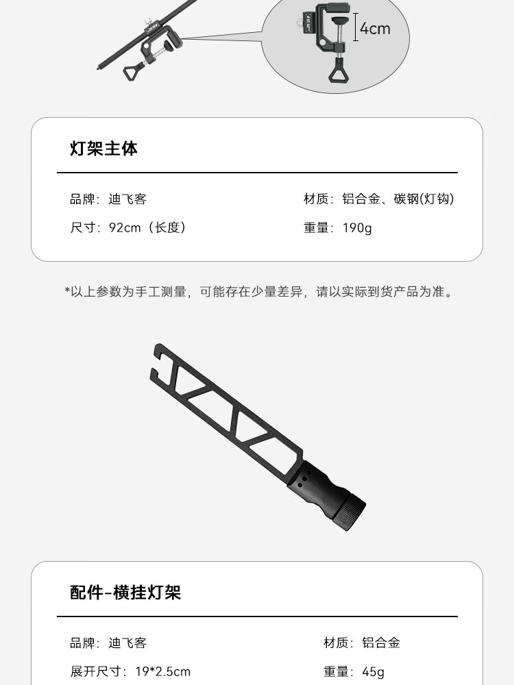 迪飞客/Defthike户外露营灯架便携式世纪桌喝茶桌配件夹具灯架零件组合 4.5cm多功能灯架