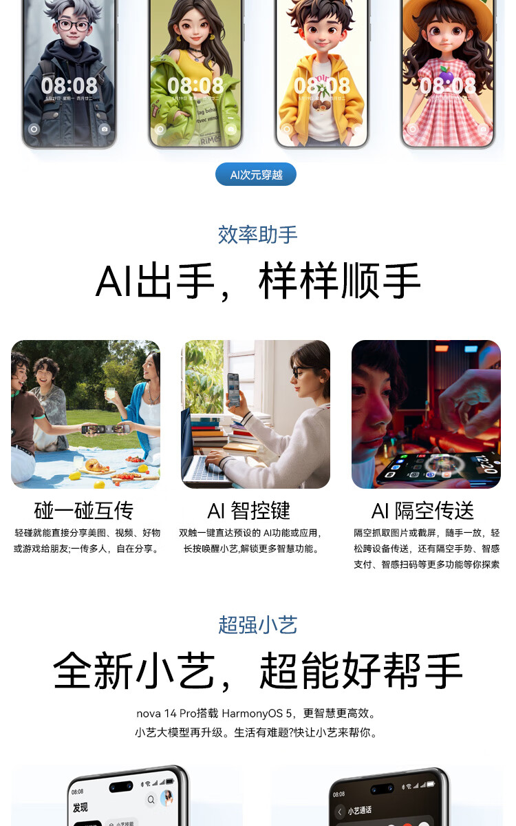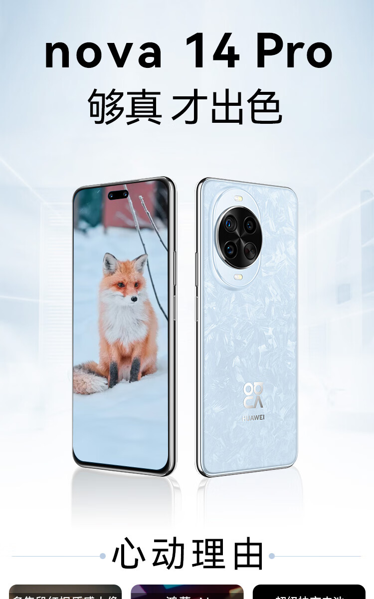 华为 nova 14 Pro 支持鸿蒙6 鸿蒙AI 现货直发 全新旗舰 多焦段红枫质感人像 鸿蒙智能华为手机 YX55 凝霜白 12GB+512GB全网通版(昆仑玻璃) 官方标配
