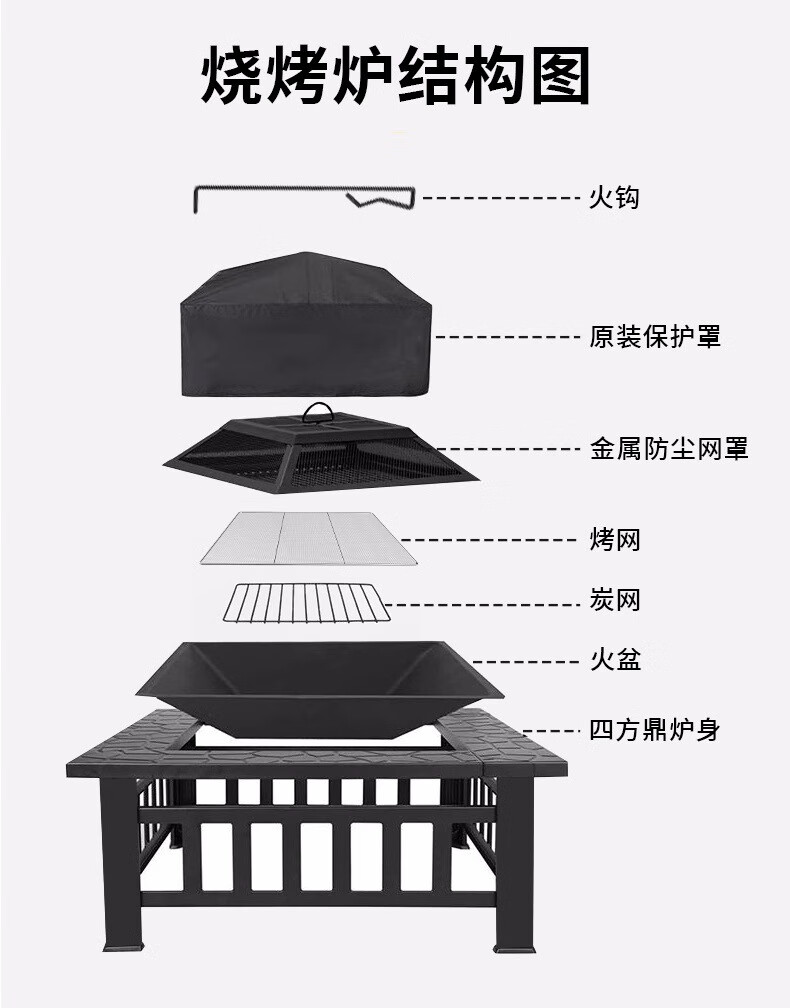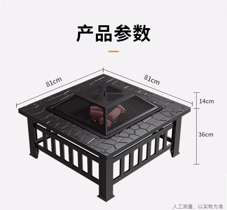 曼迪卡威围炉煮茶户外烧烤炉烧烤架烤火盆煮茶家用室内室外庭院大号商用 两用四方炉碳网网盖防尘罩勾火钳