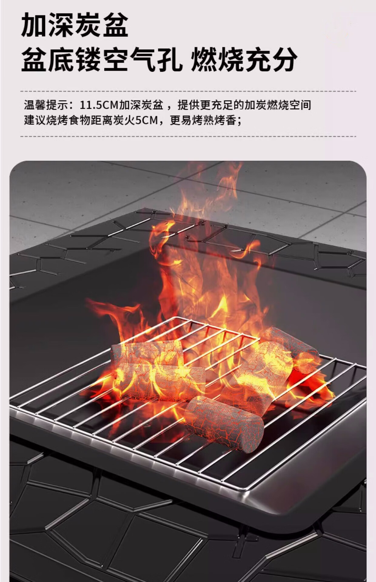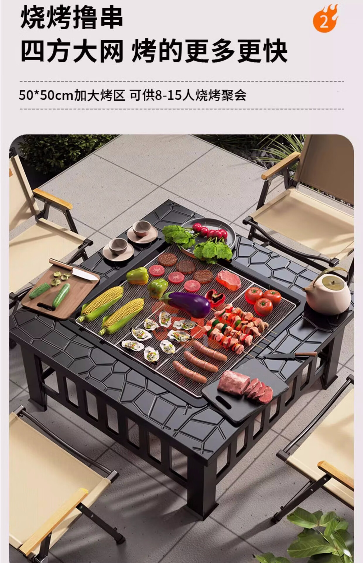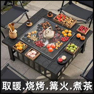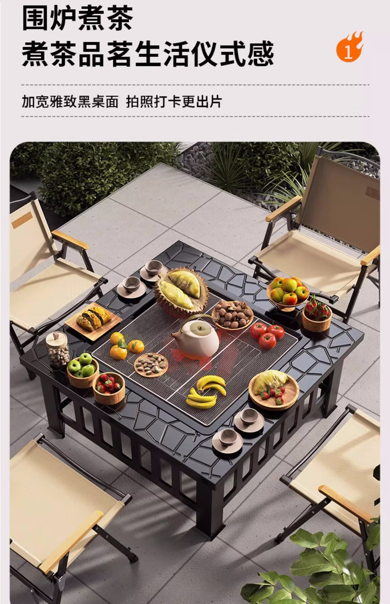 赟娅户外野营烧烤架家用取暖炭火烤肉炉野餐烧烤炉庭院围炉煮茶围炉桌 方形多功能围炉【豪华七件套】