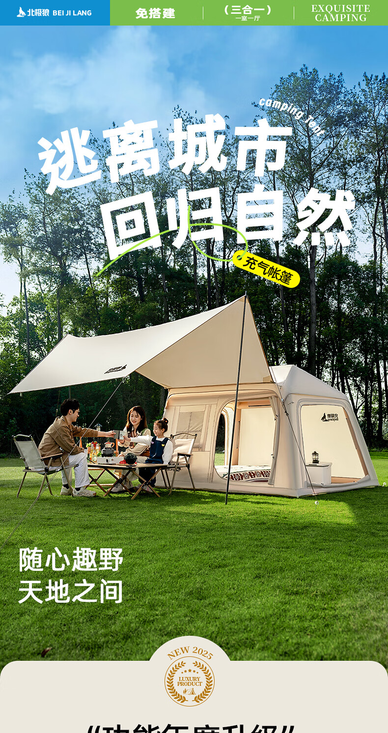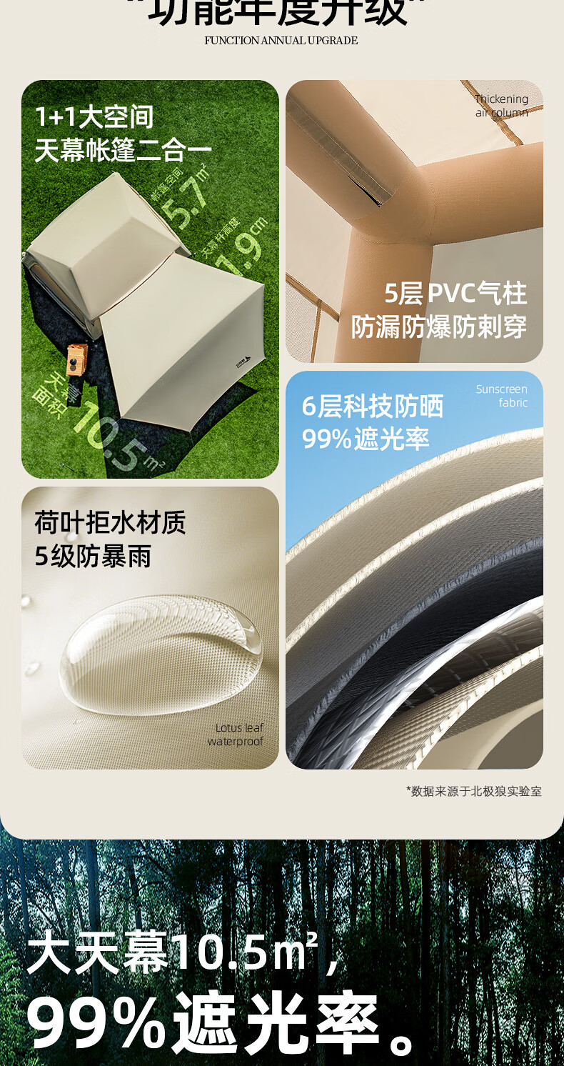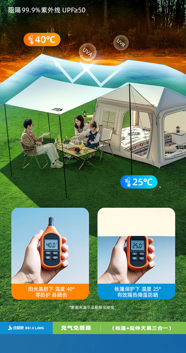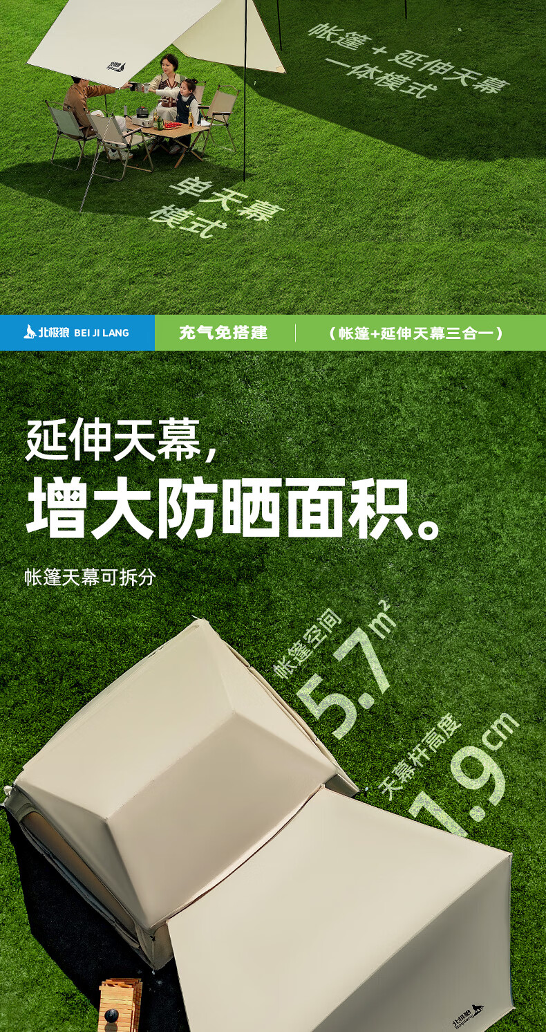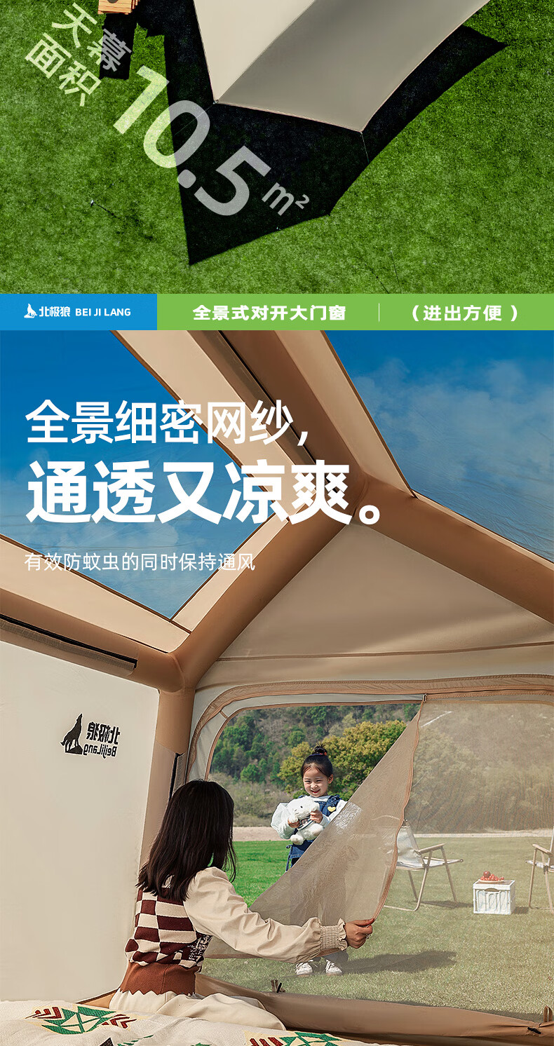 北极狼充气帐篷户外露营便携式大空间全套装备野营过夜自动大天幕二合一 【可拆卸天幕】2-6人充气帐篷