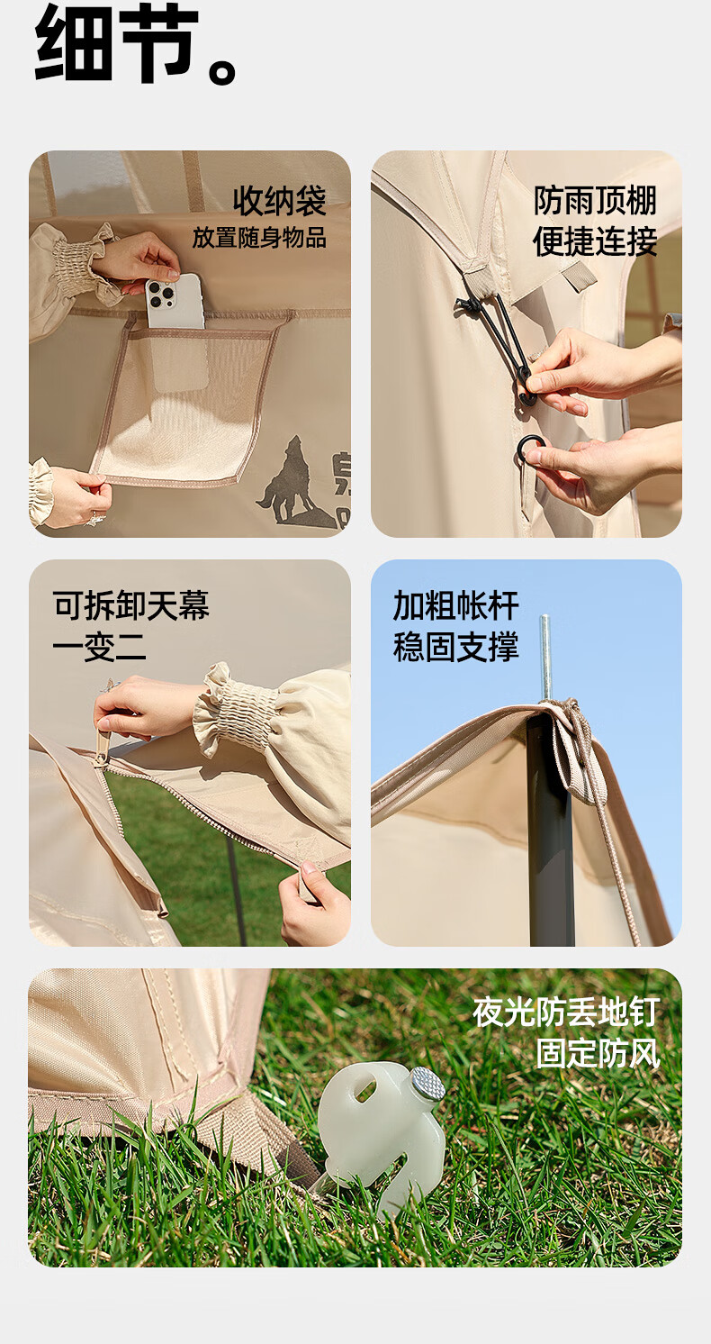 帐篷特别满意!!!也用了两三次,比着市面上的帐篷,这个款式外观很好看,质量也不差,喜欢的别犹豫了