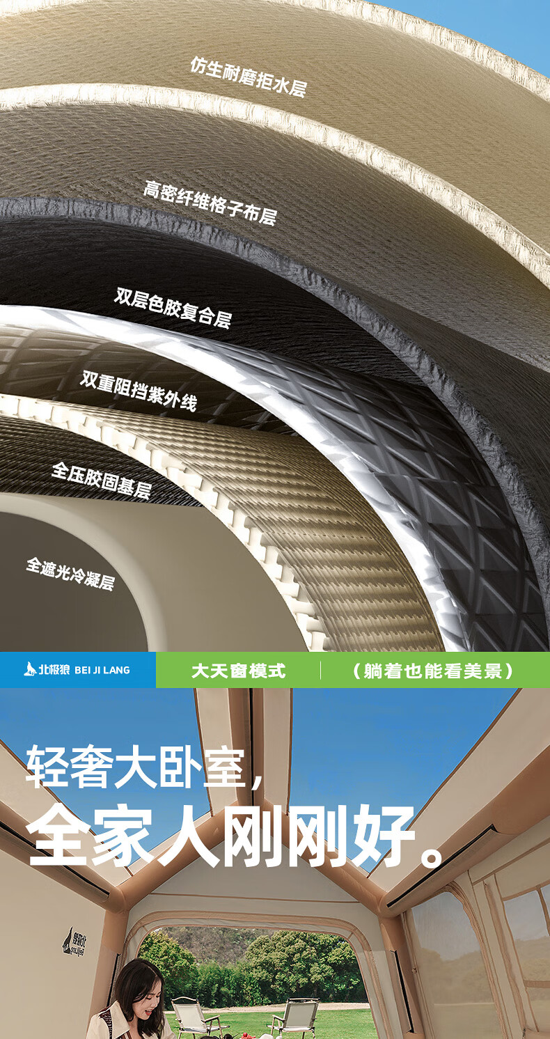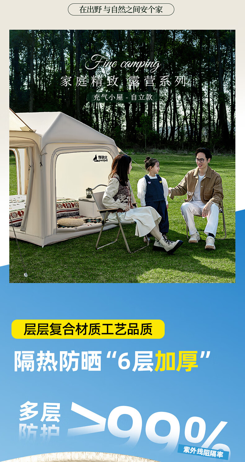 北极狼充气帐篷户外露营全自动速开帐篷天幕二合一防晒防雨便携野营装备 云筑小屋【自动充气床套餐】