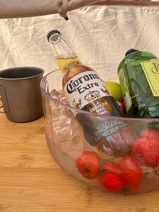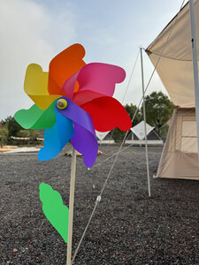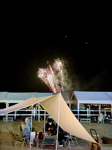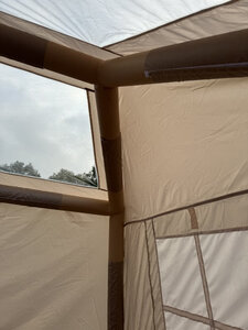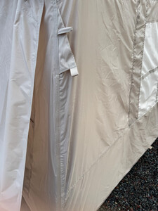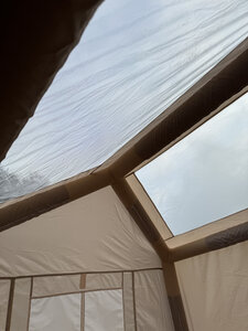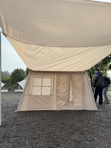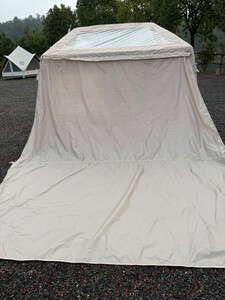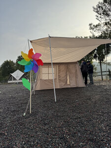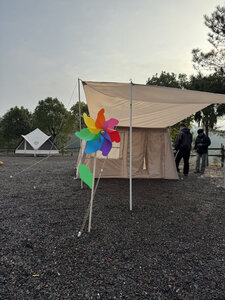 第一次带出去露营就把诸多恶劣天气都遇到了,白天太阳下44.5℃,晚上开始7级左右大风和雷暴大雨,正好把这款帐篷所有优劣状况都有了最直观的体验。 先从牢固度来说,因为没预想到会有大风,所以帐篷本身我没牵风绳,天幕拉了四根,整晚下来帐篷主体和天幕都没有丝毫问题以及动摇(拉好风绳的情况抗8,9级的风力应该没问题),而朋友的天幕直接被吹垮了,还有个小帐篷被掀翻了。