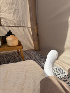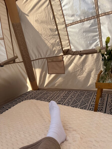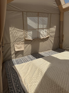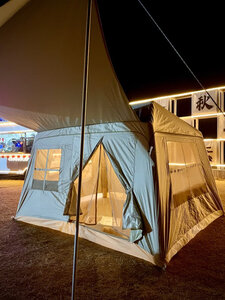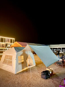 充气小屋在户外很有家的感觉,夜间亮起灯,特别有氛围。晚上看夕阳,早上看日出,非常棒。