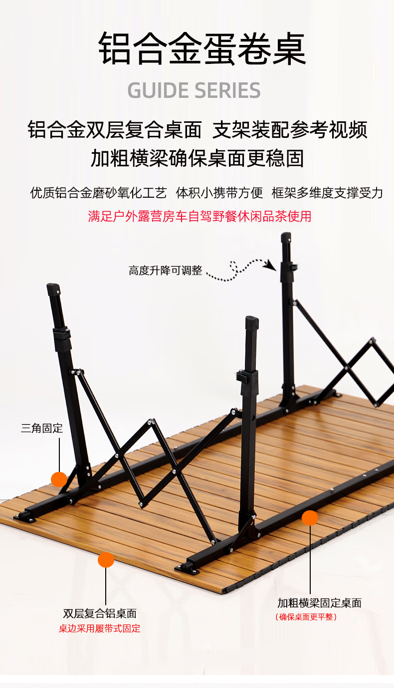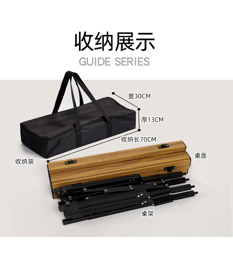 Guide Series户外腿部升降桌铝合金折叠桌野营休闲套装组合便携桌 步林山野084--木纹色折叠桌