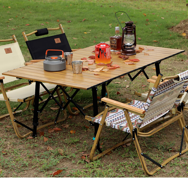黑鹿(BLACKDEER) 户外折叠桌木纹蛋卷桌便携桌椅套装野餐烧烤桌子露营桌轻便桌 木纹色120CM