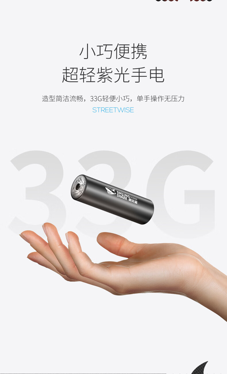 这款微笑鲨紫光检测灯太实用了!365nm紫光照**准,蔬菜农药残留、荧光剂一照便知,400毫安续航强,小巧便携,居家检测必备!