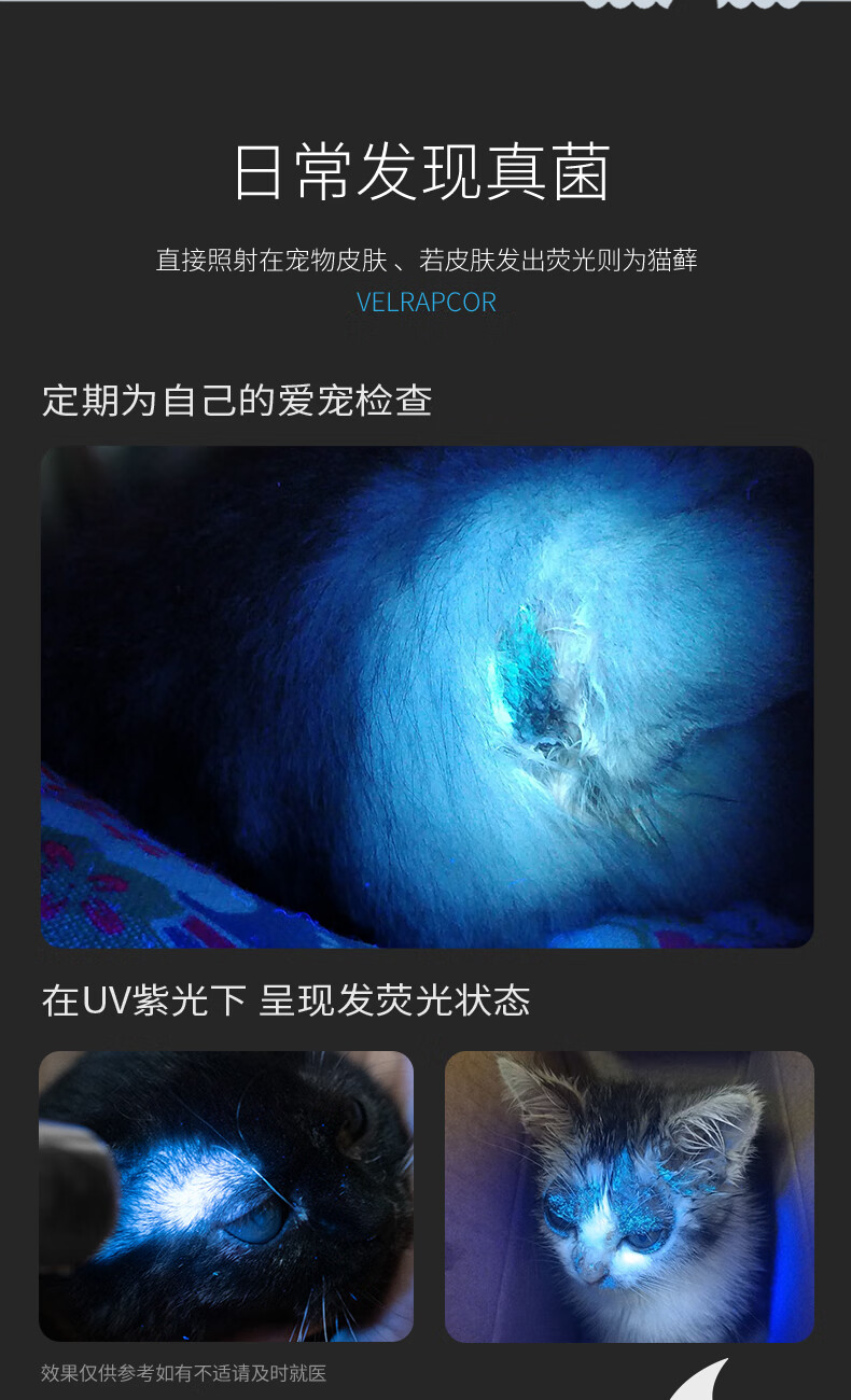 微笑鲨伍德氏灯照猫藓灯紫外线荧光剂笔紫光灯真菌检测手电筒宠物逗猫棒 【紫光检测灯】加大容量 USB快充+小巧便携紫光灯