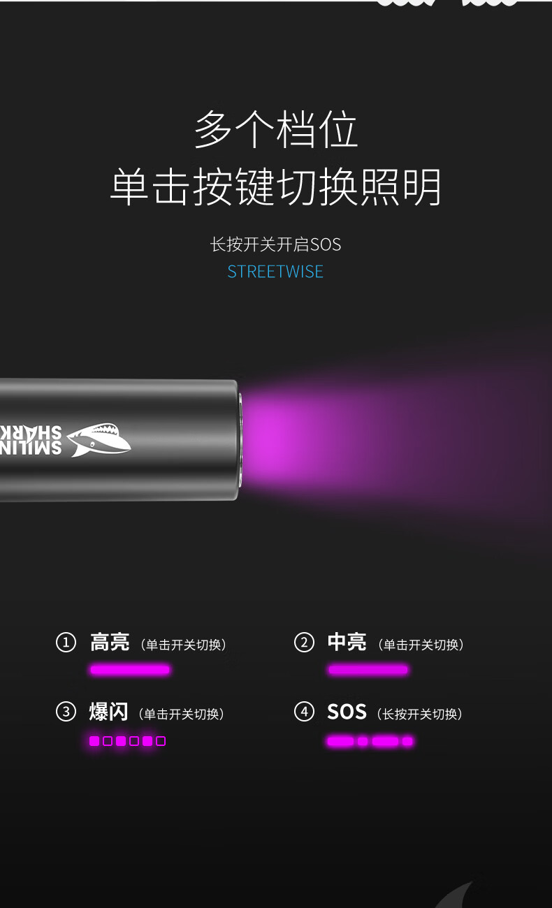 微笑鲨紫光灯鉴定手电筒蔬菜检测蓝帆蓝光荧光剂365nm紫外线检测灯 100毫安-紫光检测灯 迷你便携+USB充电+紫光检测