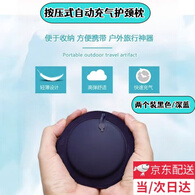 何健弓按压式充气u型枕充气式可折叠压缩枕头坐车动车旅行护颈枕便携式 升级加厚【黑色+深蓝】360度全包裹