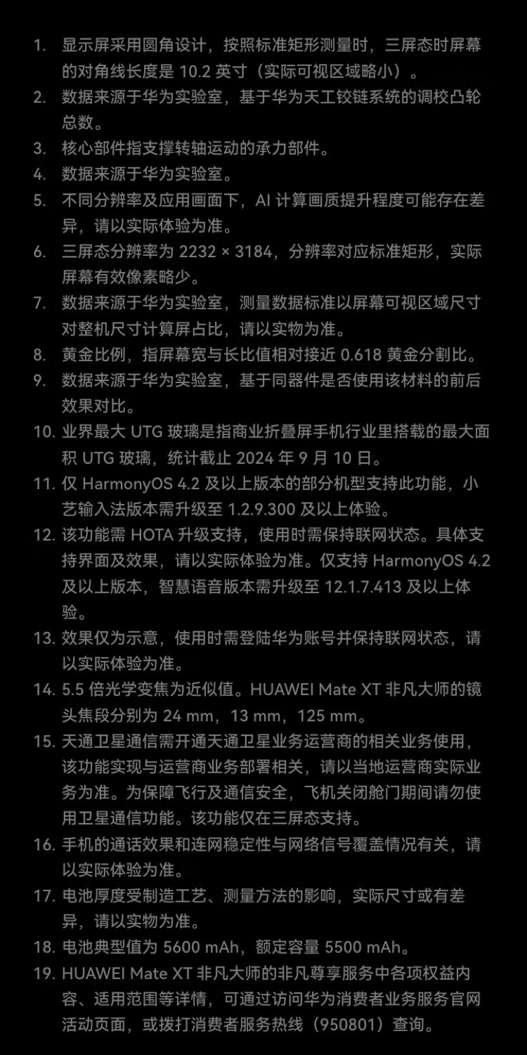 华为(HUAWEI)Mate XT非凡大师新品三折叠屏全网通超纤薄岩脉纹理10.2英寸手机 玄黑 16GB+512G 官方标配全新原封