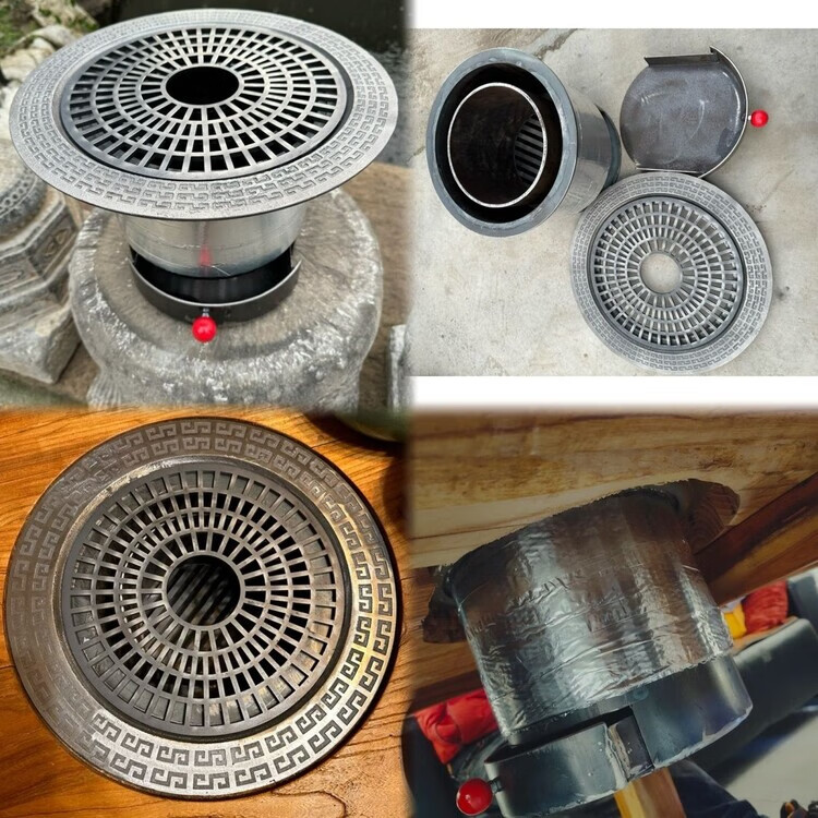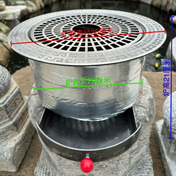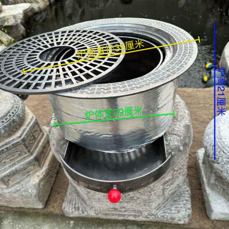 抽屉式圆形炉体铸铁炭炉冬天围炉煮茶取暖火锅烧烤铸铁炉圈嵌入用 炉面直径36厘米可调火力双层炉炉高21