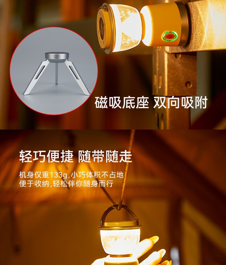 山力士拾光户外露营灯帐篷灯野营led氛围灯迷你营地照明灯超长续航 象牙白+磁吸三脚架