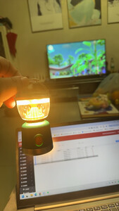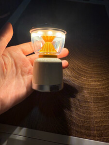 很漂亮,做工质感都很好,亮度可调。先充满电,下次露营带它出去试试,看续航可以有多久。感觉做个氛围灯也挺好的,或者让孩子拿着逛逛也方便。