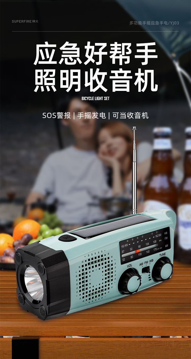 神火手摇式发电手电筒应急战备防灾地震带收音机太阳能荒野生存