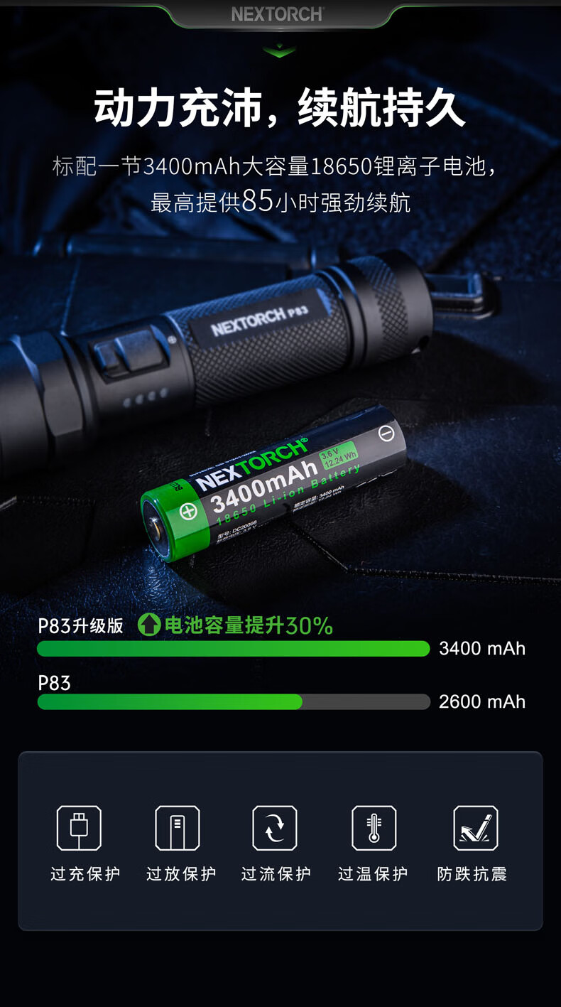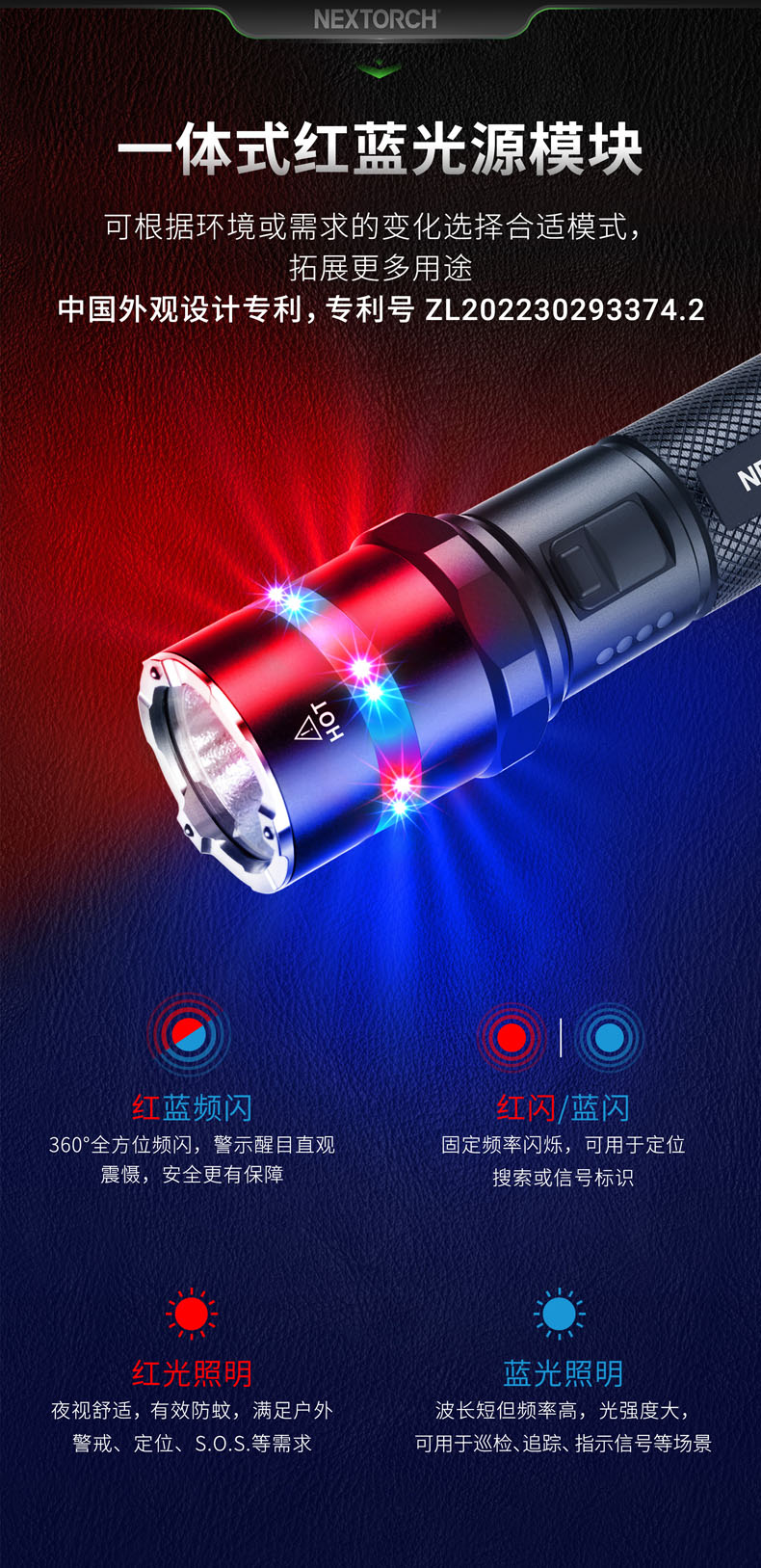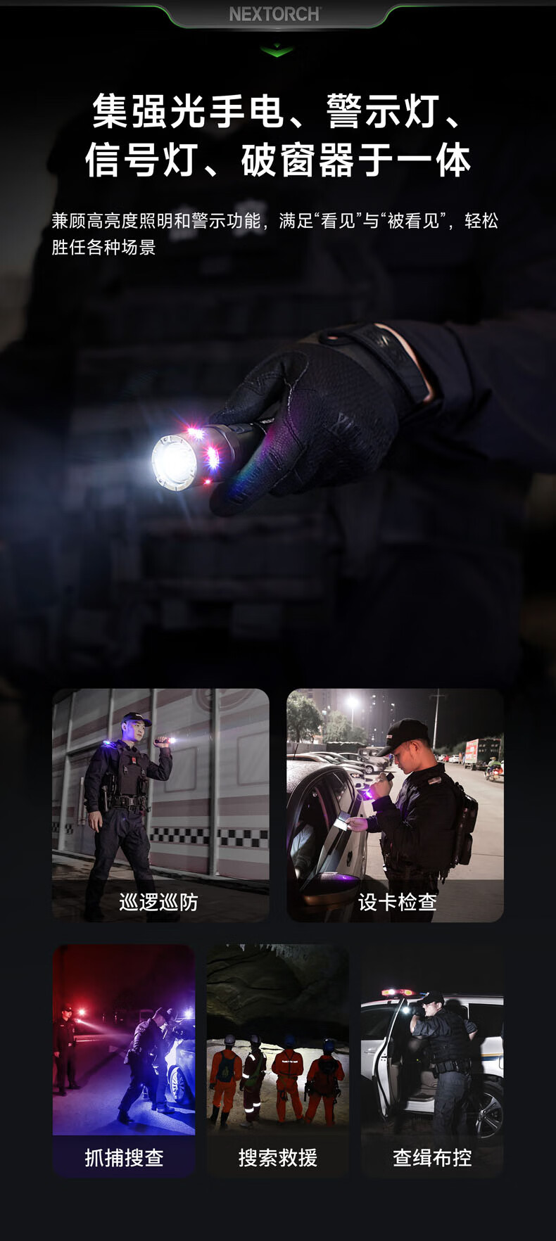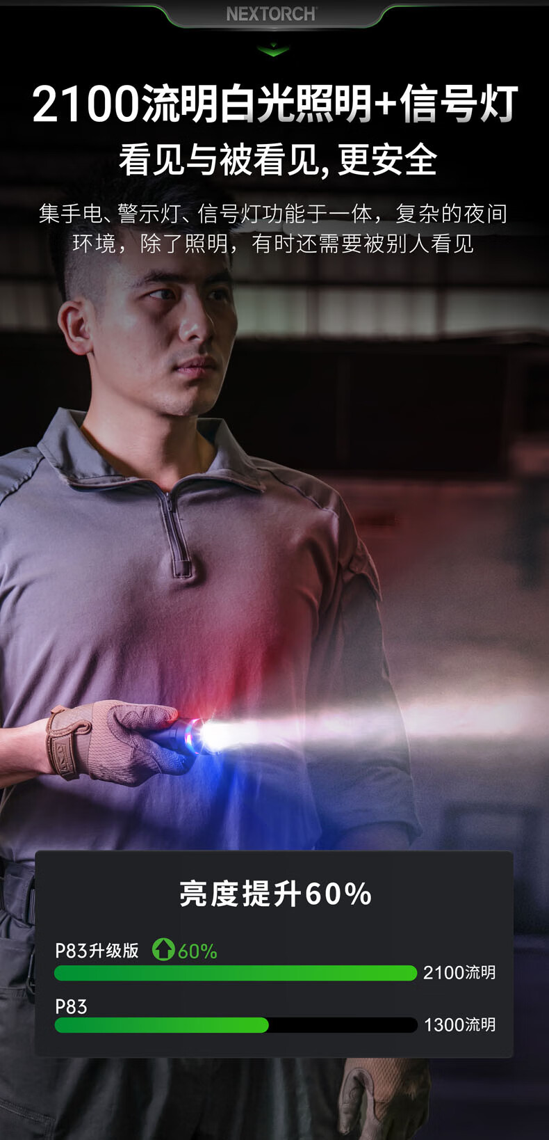 纳丽德P83/P84强光手电筒红蓝闪多功能防灾应急破窗自救逃生一键爆闪 P83标配(2100流明)赠套+油+罩