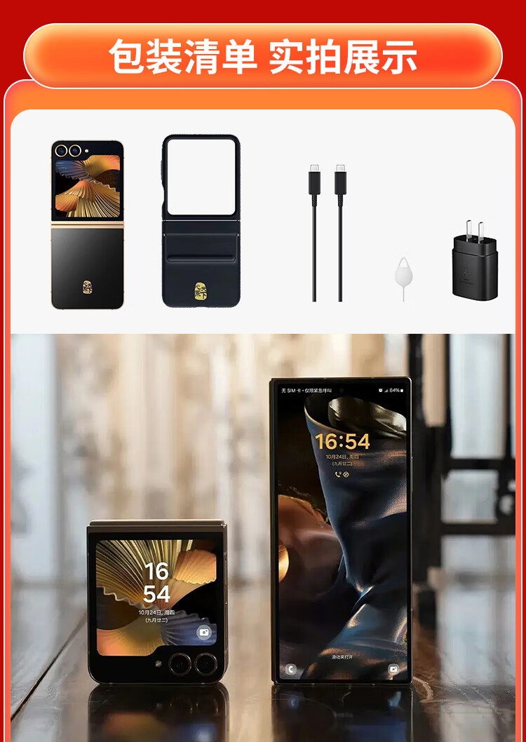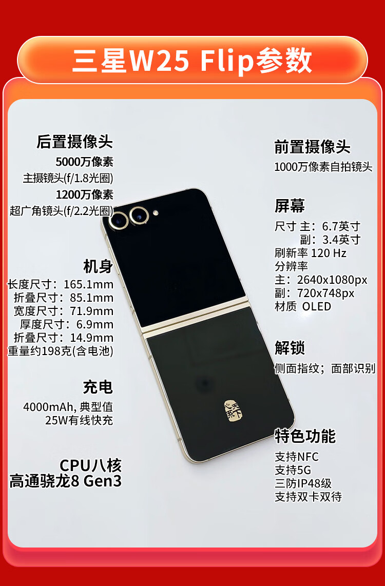 三星(SAMSUNG)W25 Flip 心系天下高端系列全新折叠屏智能拍照手机 轻薄手机送礼男女领导 陶瓷黑 仅激活