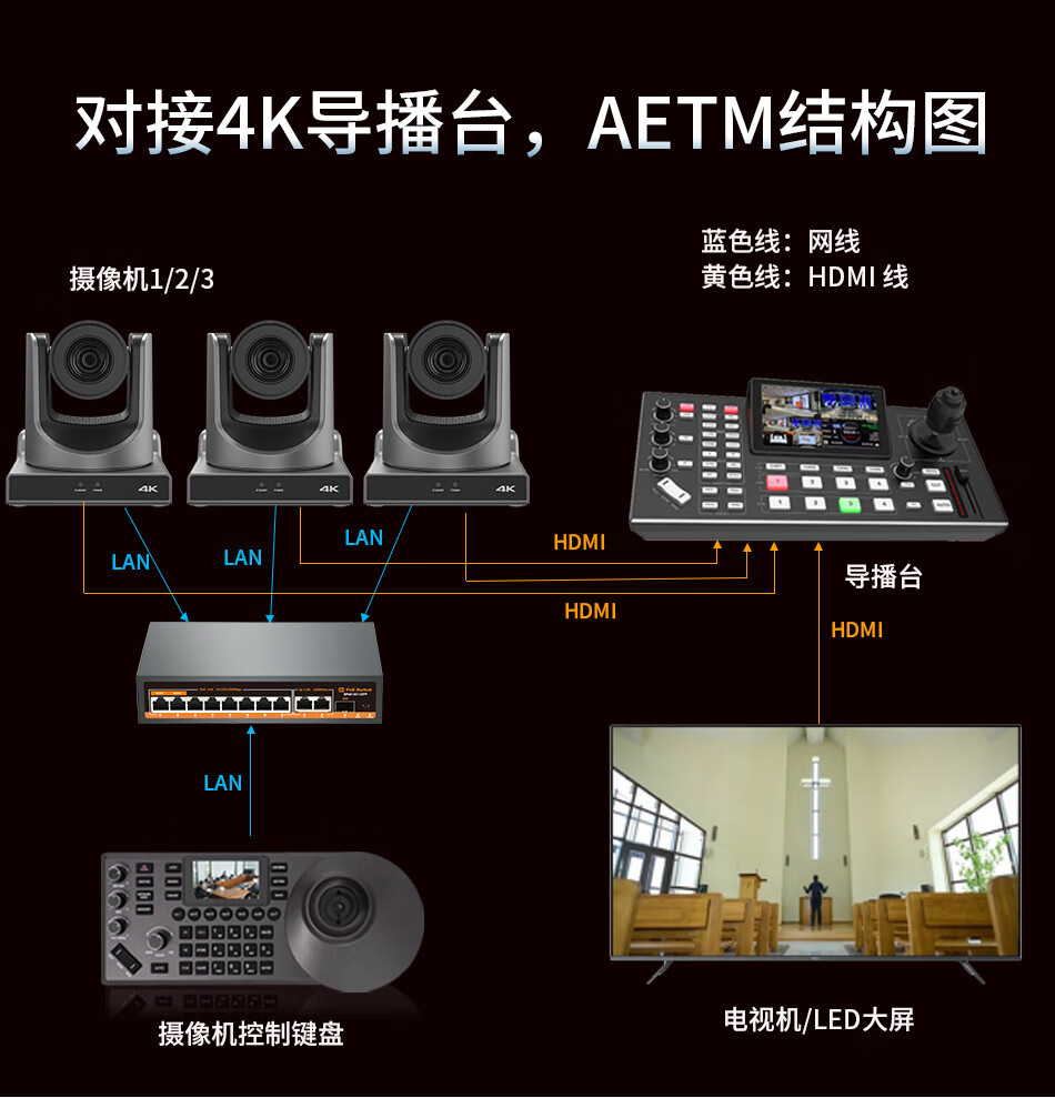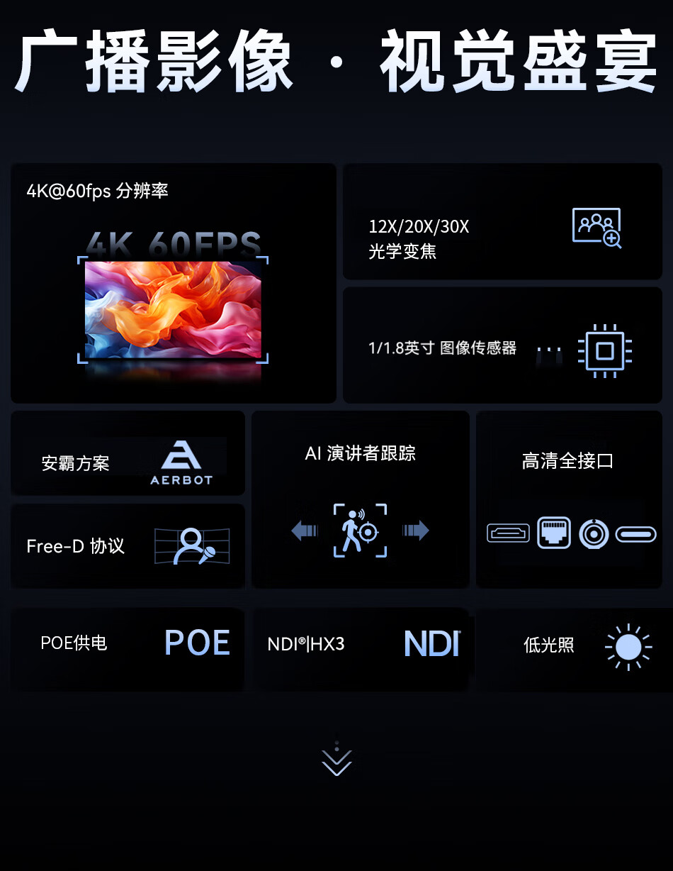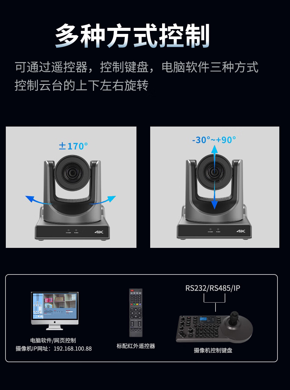 华平云讯4K广播级云台PTZ摄像机4K60fps专业直播摄像头套装 AI跟踪体育赛事教堂直播录播兼容芯象/OBS/vMix 4K/60帧 20倍NDI*3+NDI键盘*1
