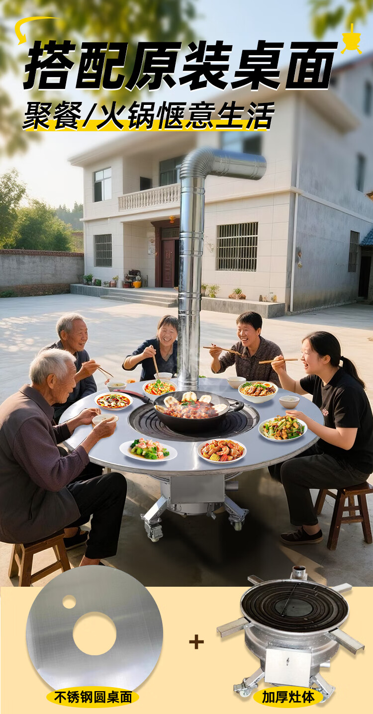 襄铂雅柴火灶农村家用新型加厚无烟一体户外可移动铁锅炖地锅烧柴火灶炉 【大号】60豪华版+120cm圆桌面