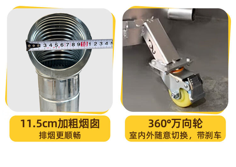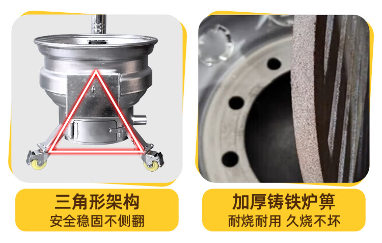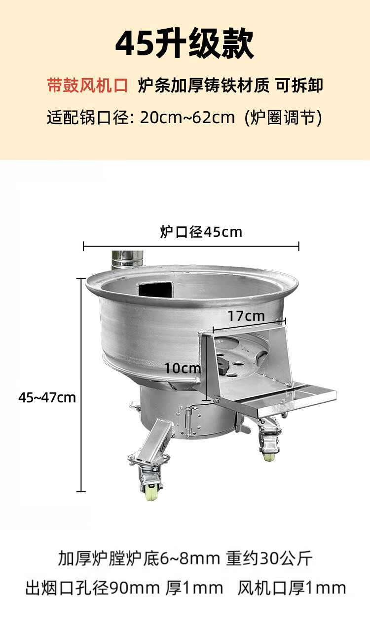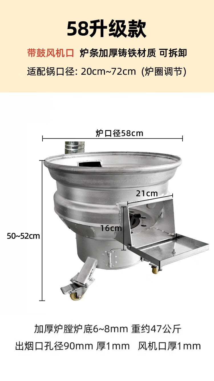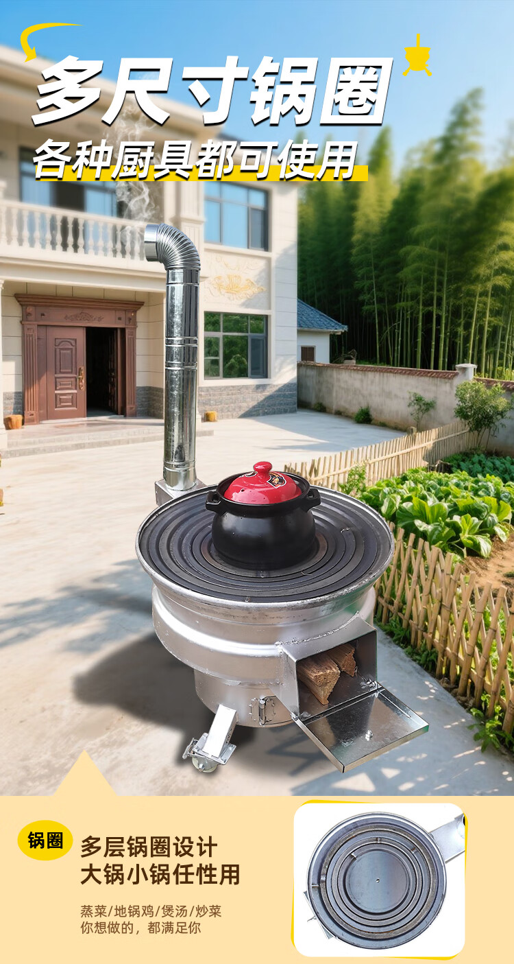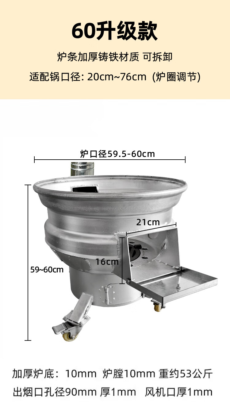 货收到了试用了一下,比较好用,烧柴火大。整体厚实,滑轮设计解决笨重问题,做到方便便捷的效果,有这个炉子再也不怕来亲戚了,直接推到院子里炖大鹅,商家诚信赢天下。值得购买,虽然贵点,但是也是一步到位,可以使用很多年的。