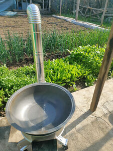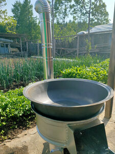 用了几天来评价一下,供其他买家参考。这个炉子是真的不错,够大,很敦实,炉腔也足够大,很稳定,因为是废旧汽车轮毂改造,炉壁很厚,制作也是机器自动焊接,制作比较精致。最值得表扬的是它的燃烧能力,燃烧非常好,火很旺,而且正常烧火了以后烟很少,是那种青烟,因为炉腔大,进风口大,氧气足,燃烧充分,虽留有鼓风机接口,但我看根本不需要连接鼓风机,风量足够用。优点有很多,恕不能一一评说。建议大家有院子的尽管放心买,买大不买小。